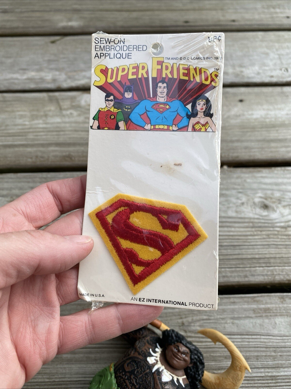 • Vintage 1970s Superman Logo Embroidered Sew On Hat Jacket Patch DC Comics USA