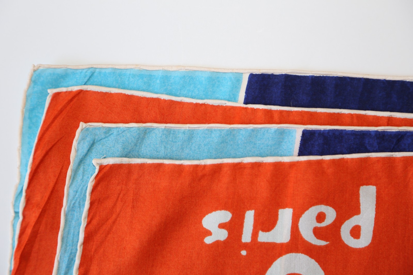 Authentic Courreges Paris Collectible large silk scarf vintage blue orange