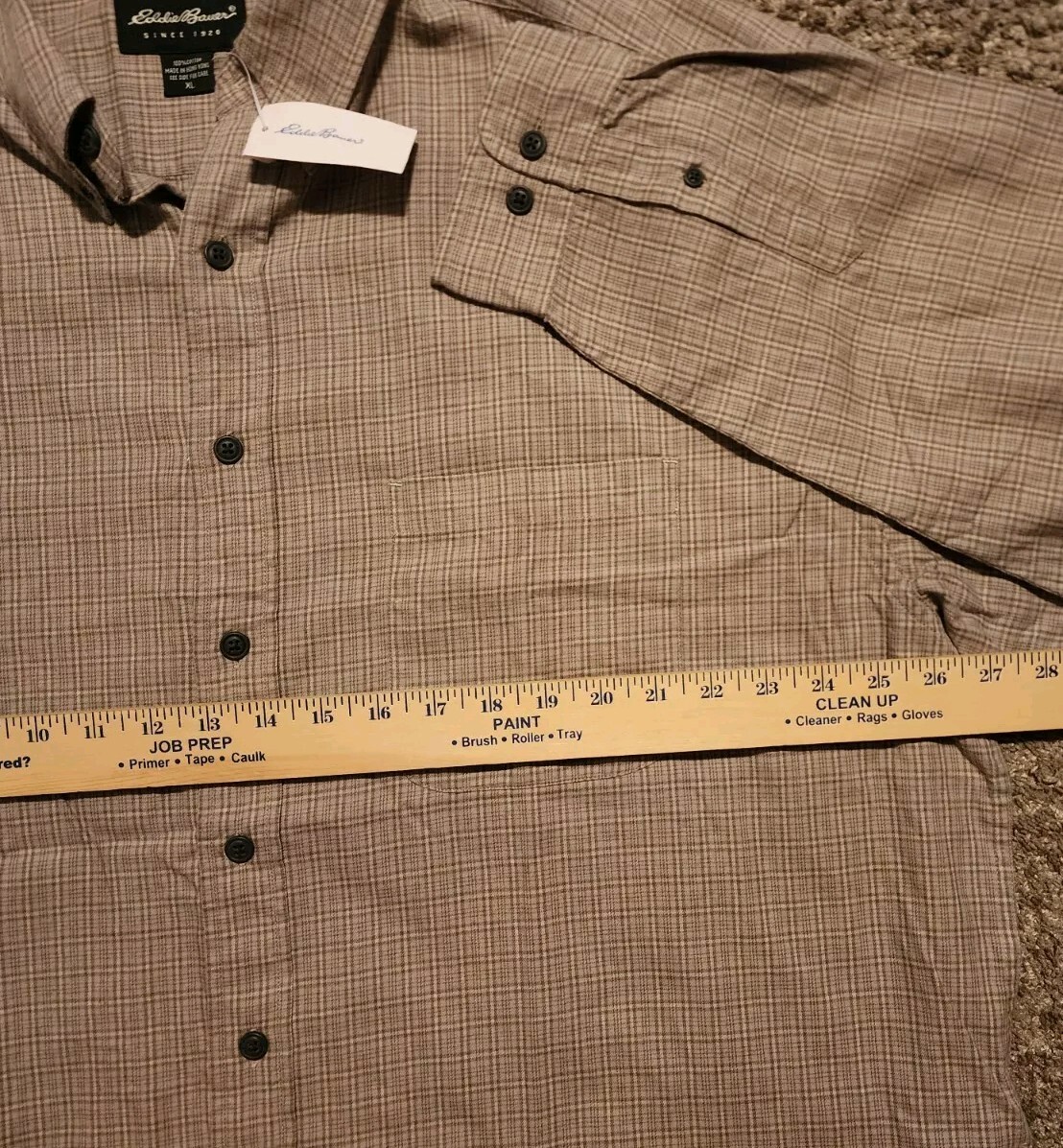 NWT Eddie Bauer Shirt Mens XL Beige Plaid Cotton Long Sleeve Button Down
