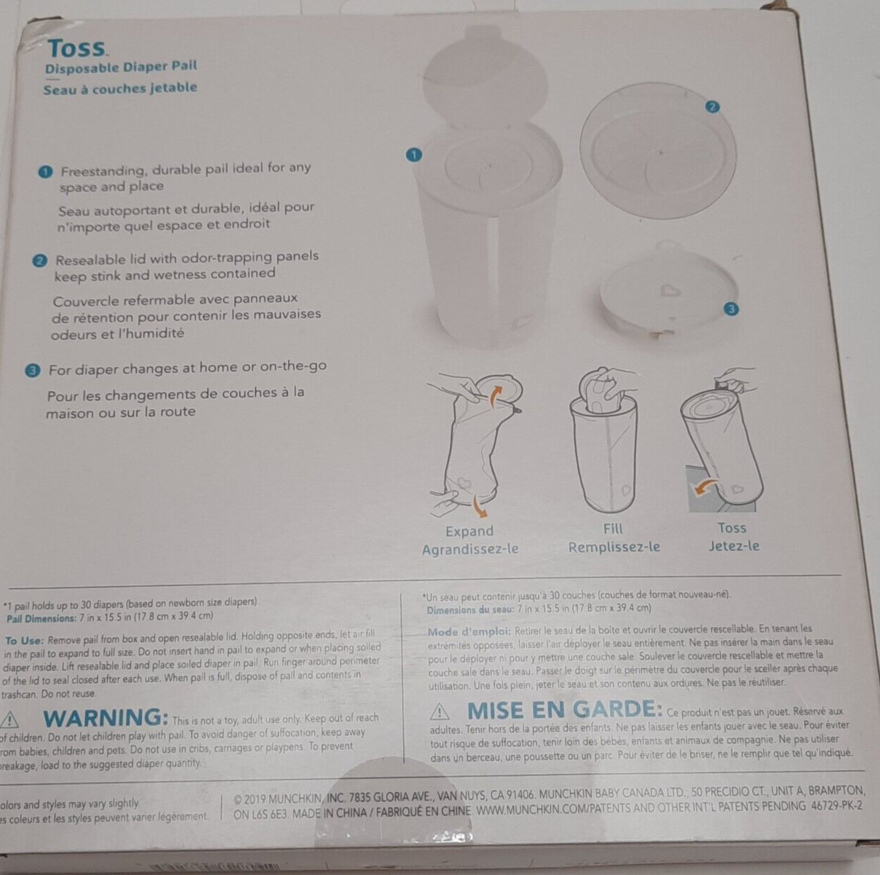 Munchkin 2 Toss Disposable Diaper Pail Portable Travel each Hold upto 30 Diapers