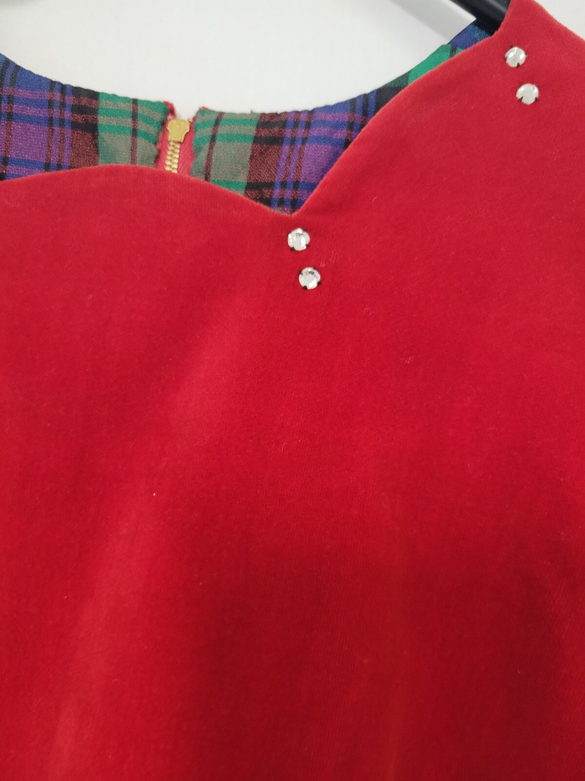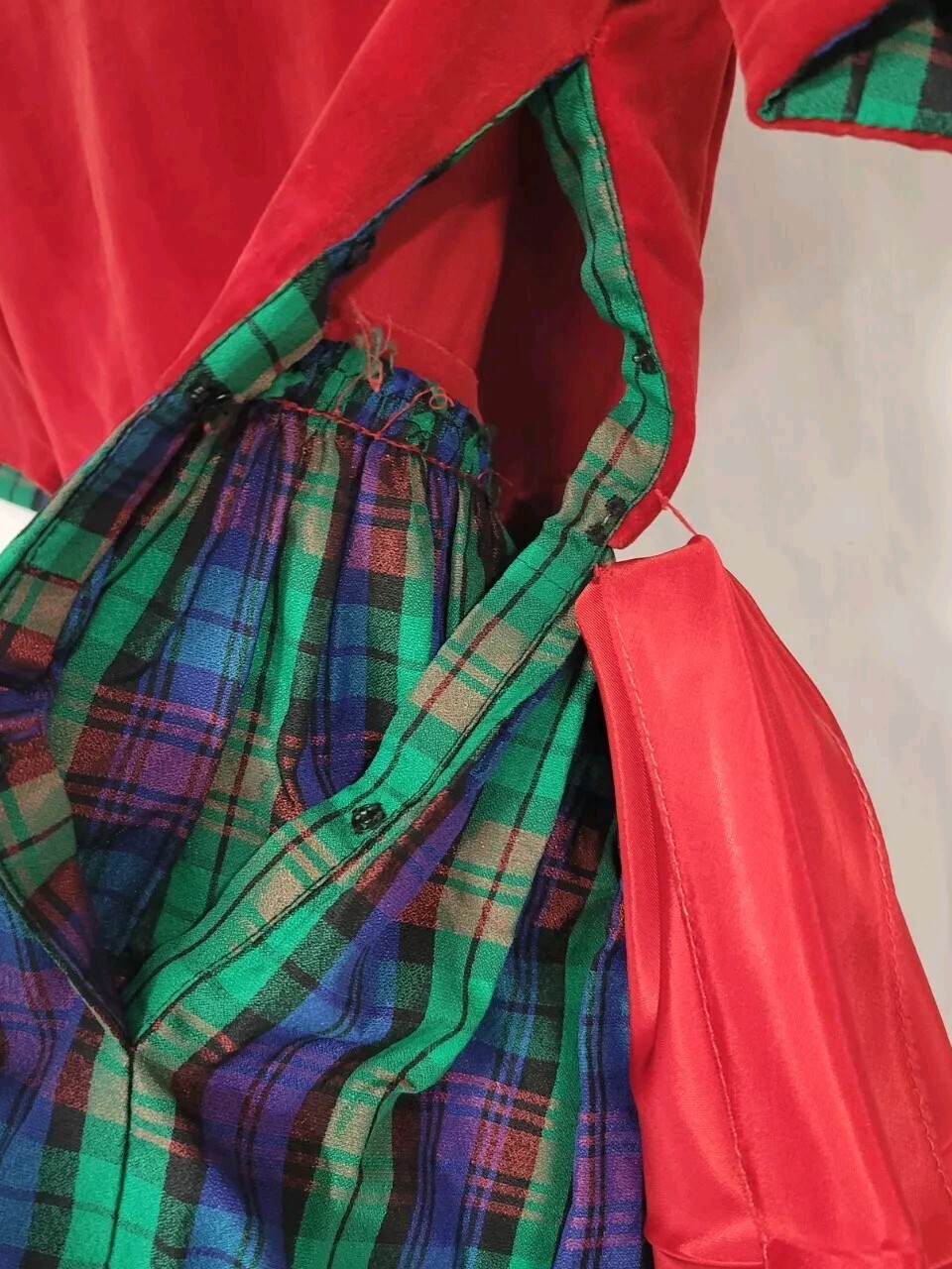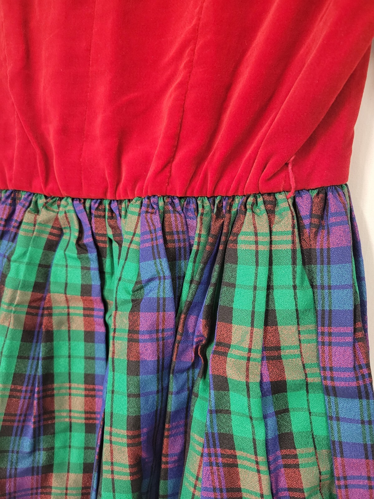 как выглядит Vintage Girls Plaid Velvet Holiday Christmas Dress Red Waist Wrap фото
