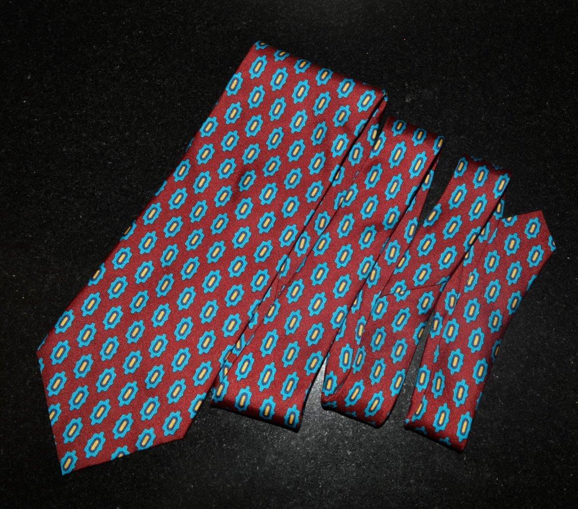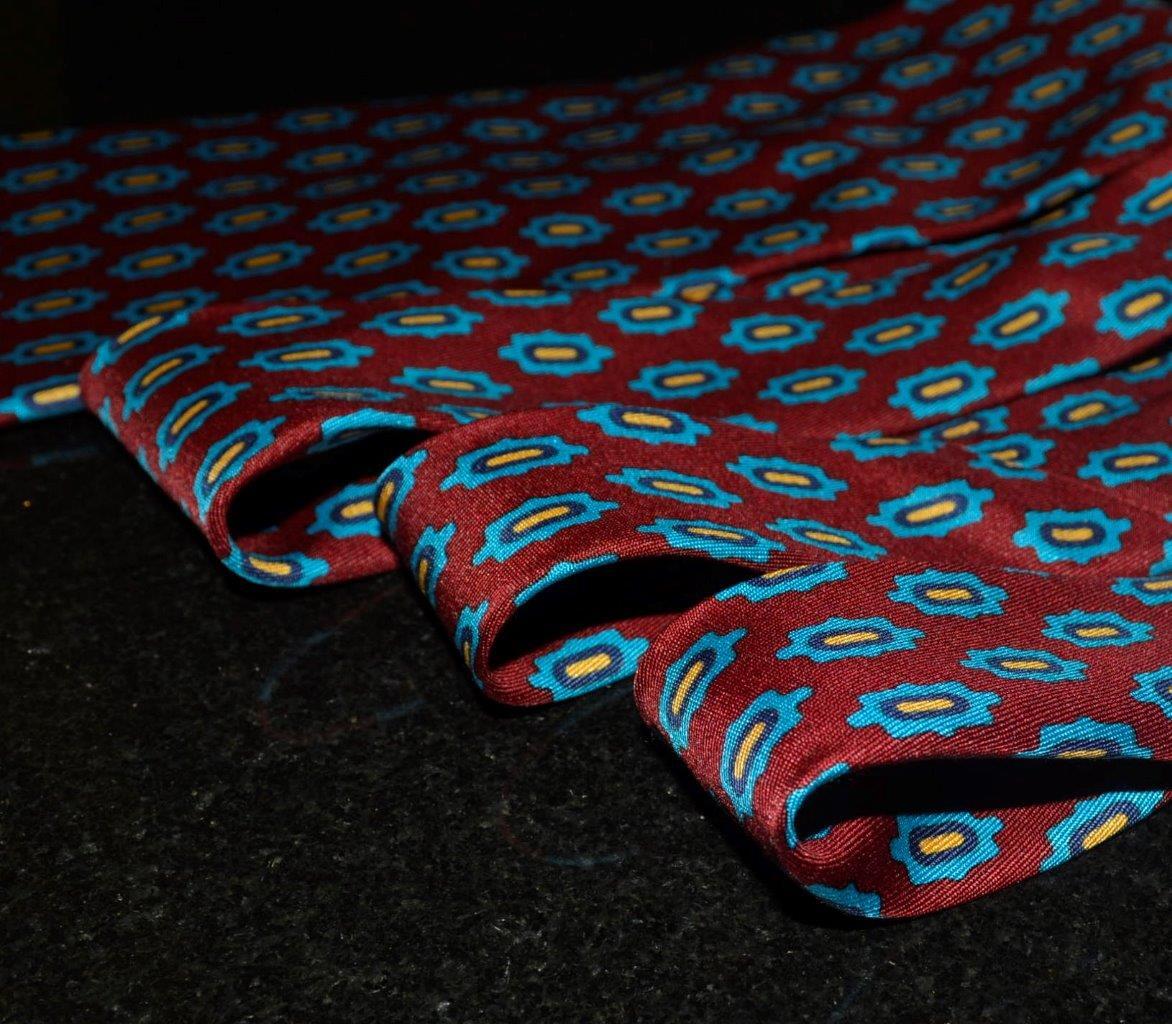 как выглядит BURBERRYS of London Silk Tie Red Blue Medallion Foulard 57" 3.75" Hand Sewn фото