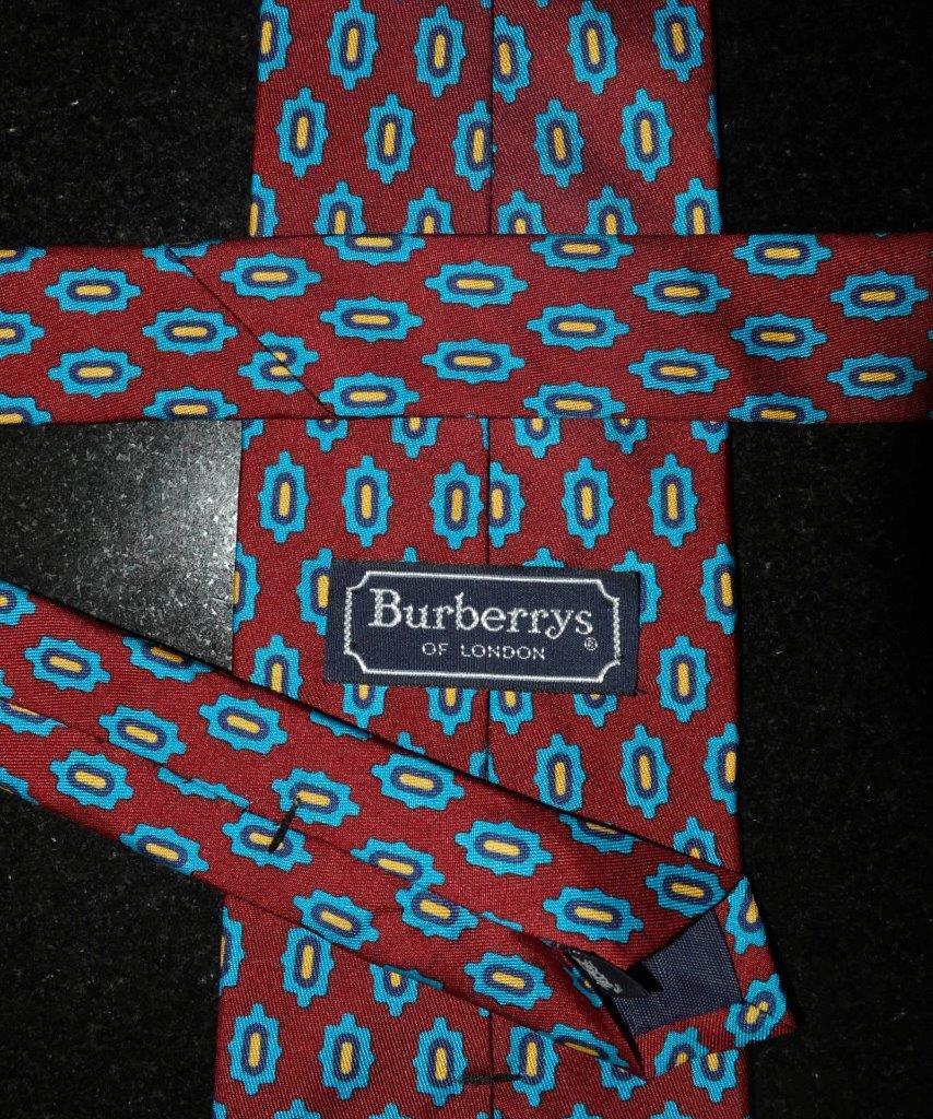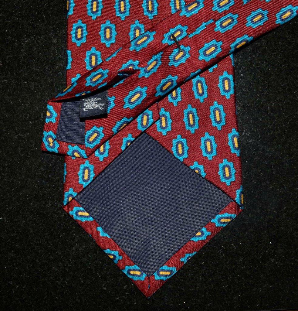 BURBERRYS of London Silk Tie Red Blue Medallion Foulard 57 3.75 Hand Sewn