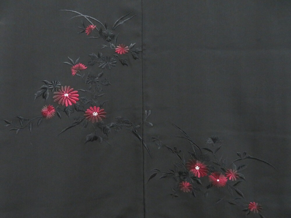 как выглядит 4603T12z580 Vintage Japanese Kimono Silk HAORI Embro Flowers Black фото