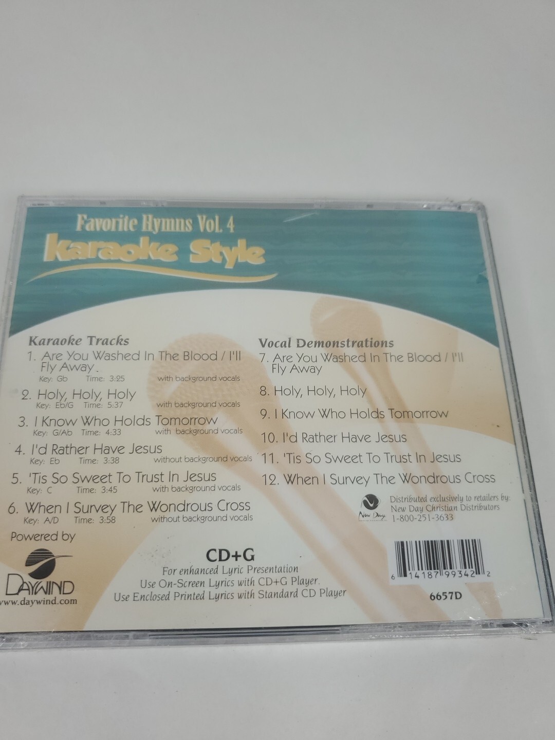 Favorite Hymns 4 Christian Karaoke Style.CD G Daywind 6 Songs Cracked Case