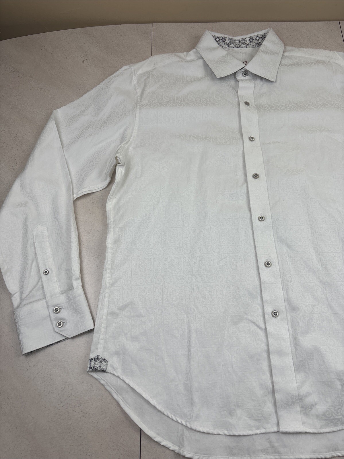 как выглядит Robert Graham Shirt Mens XL White Long Sleeve Button Up Paisley Flip Cuff фото