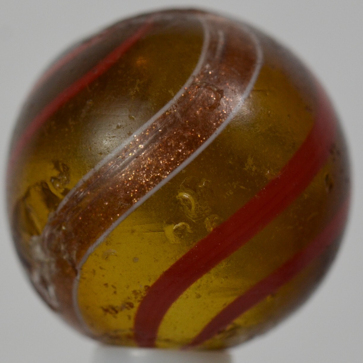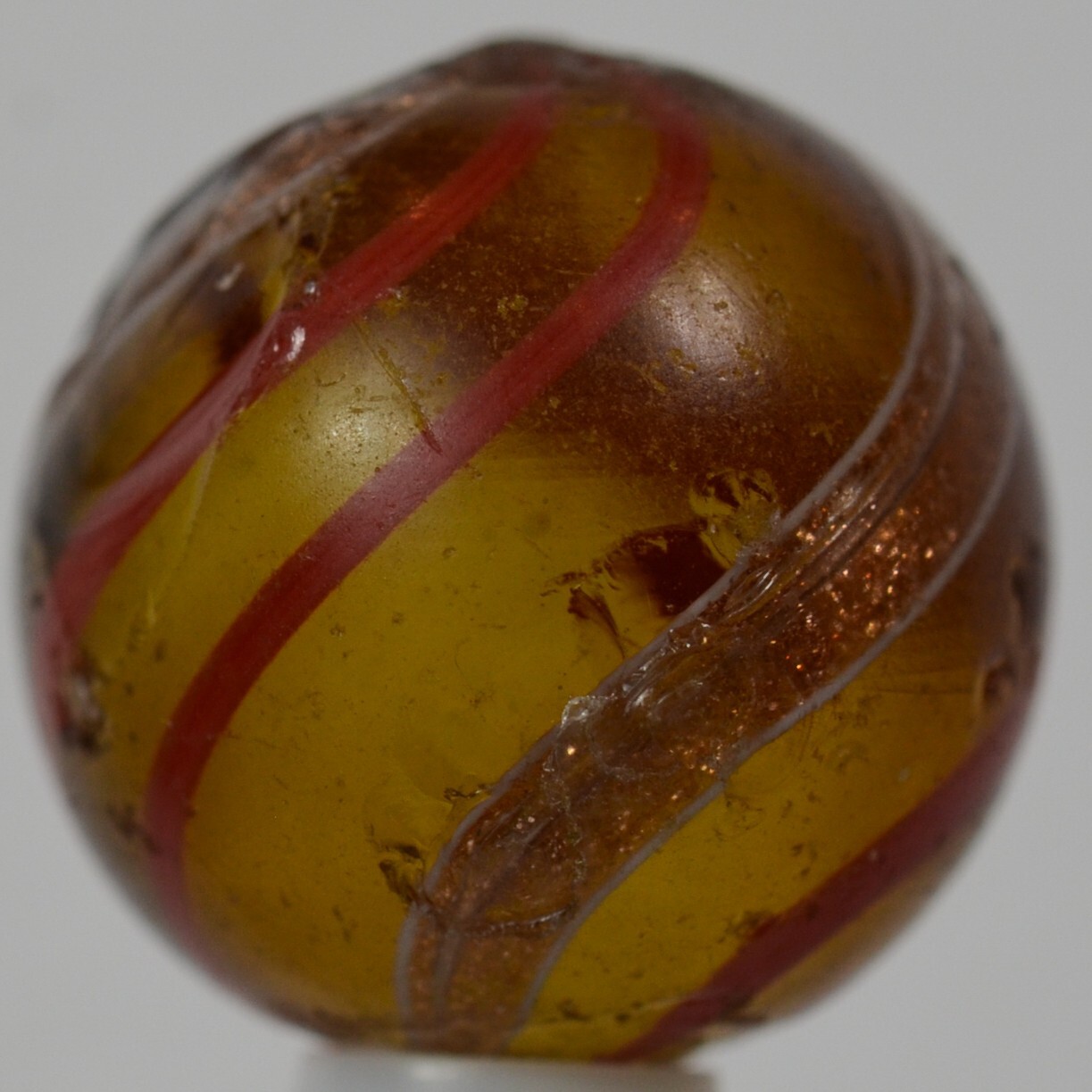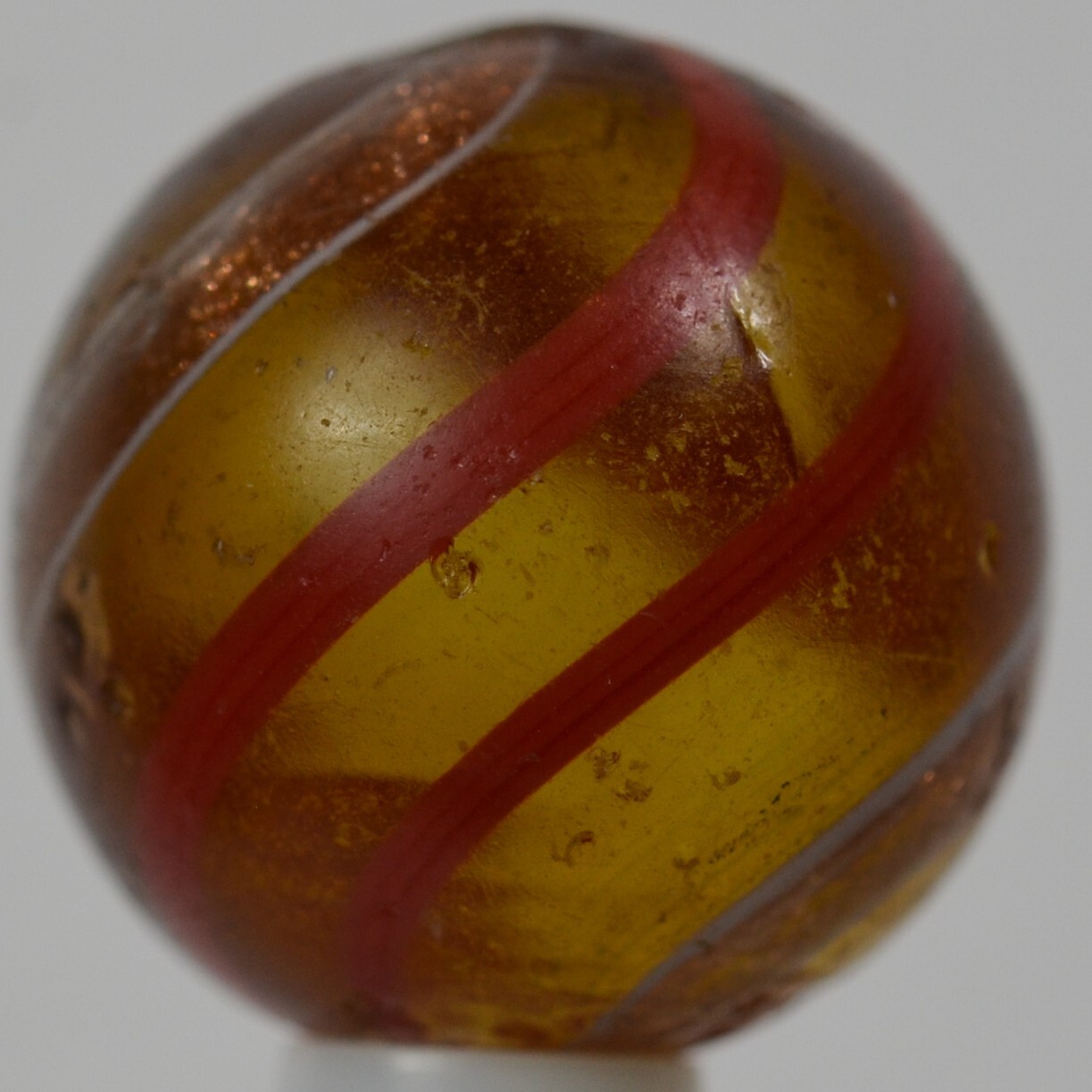 Handmade Banded Lutz Marble, Amber Base Glass, 25/32 in, NM, Chip, Germany S1258