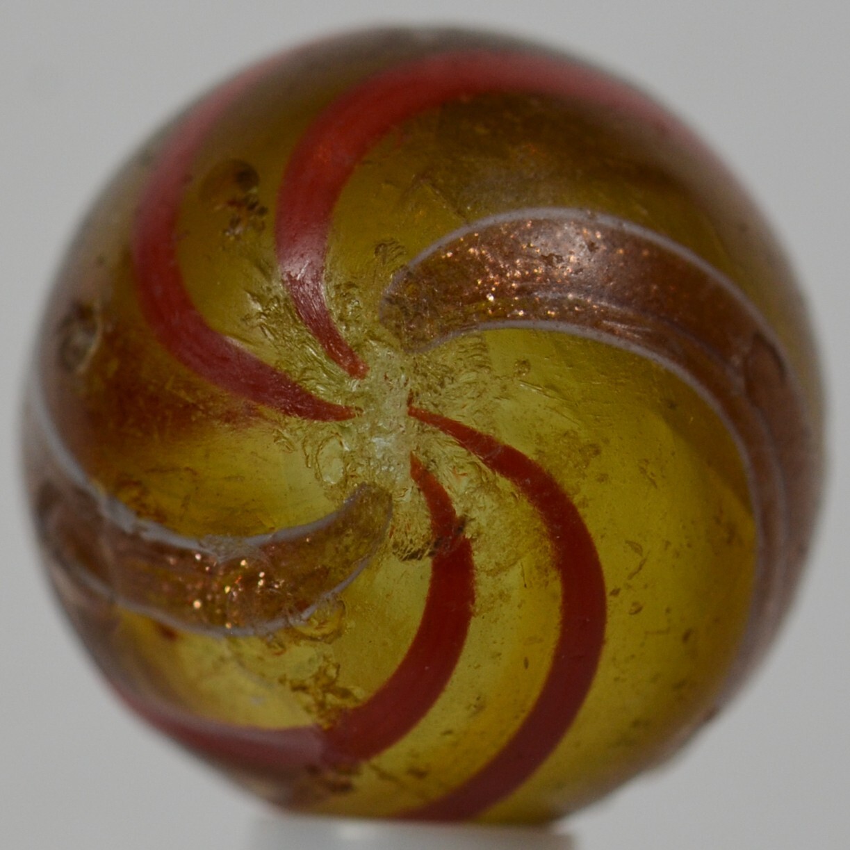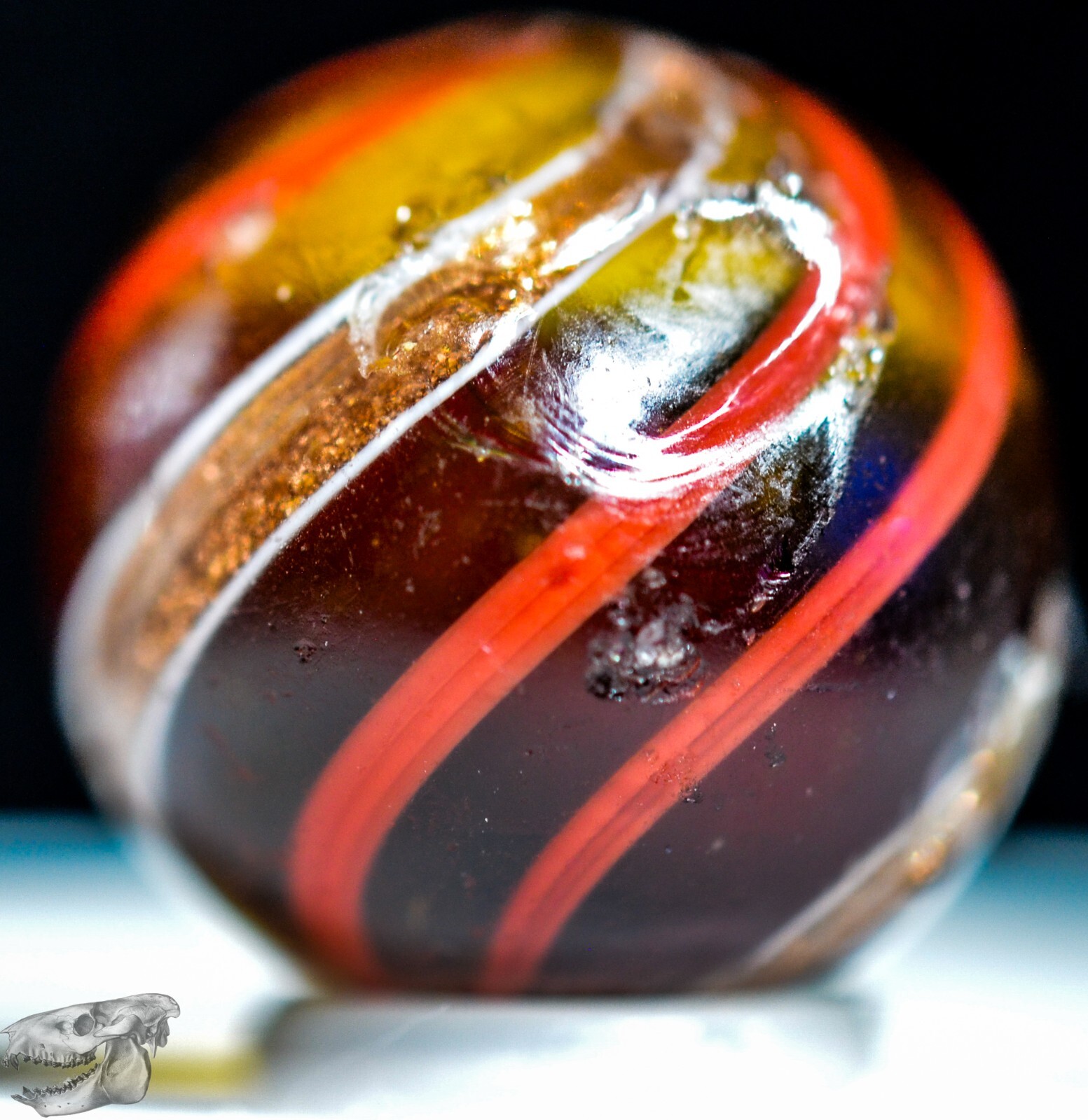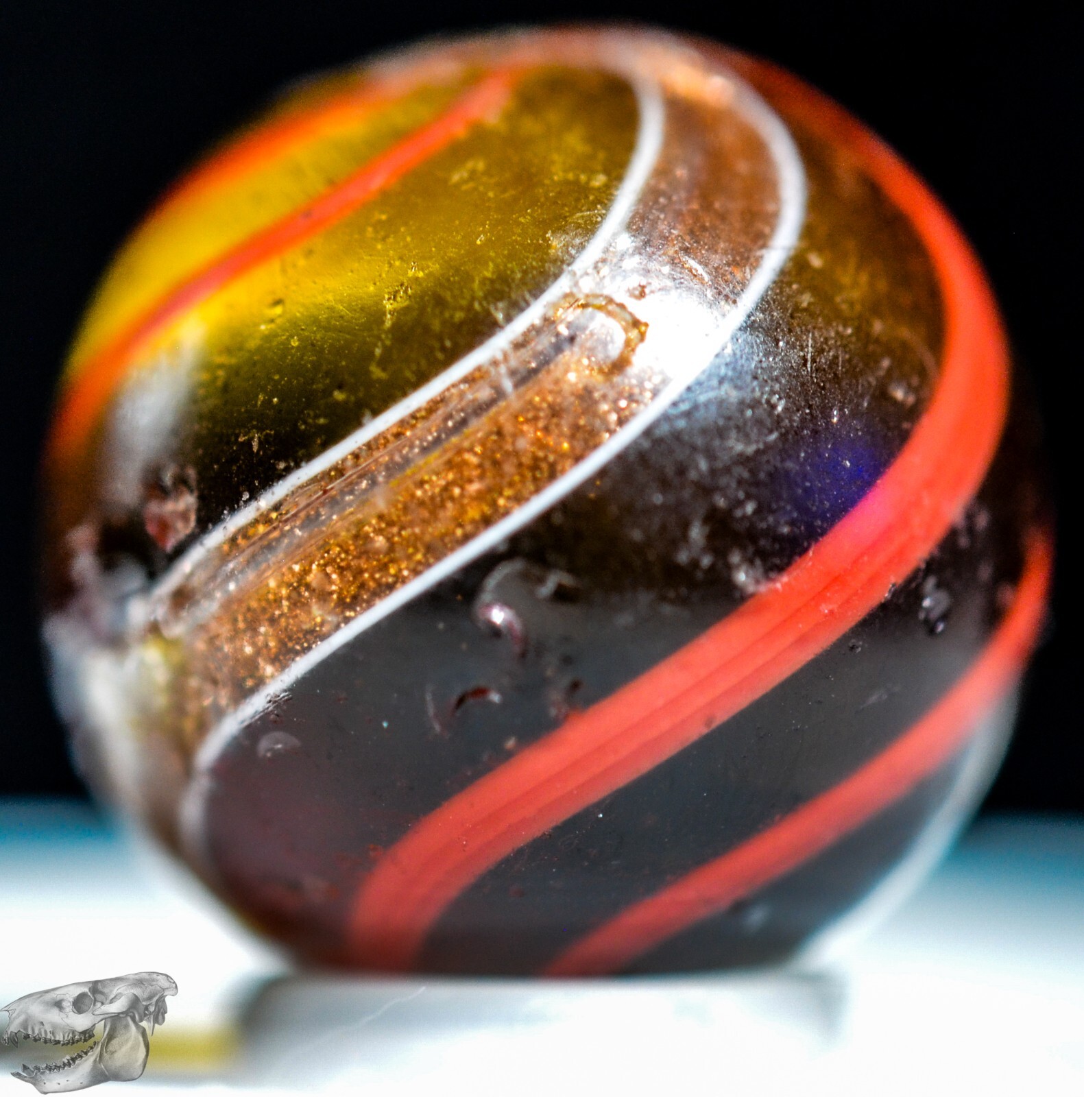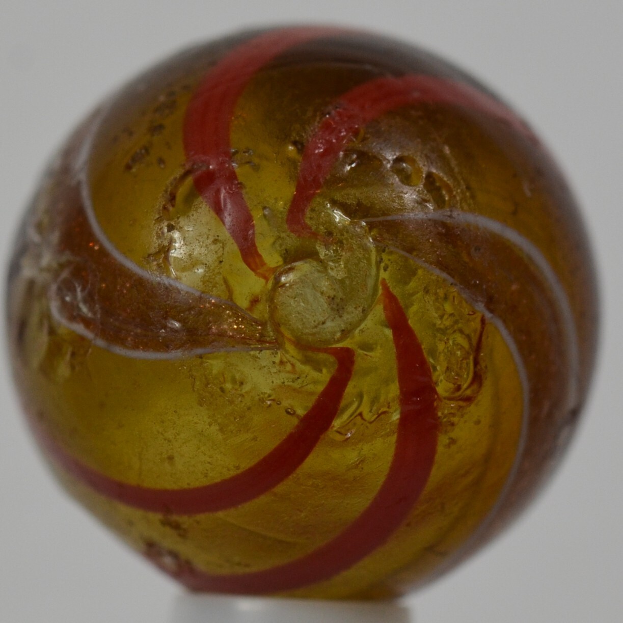 Handmade Banded Lutz Marble, Amber Base Glass, 25/32 in, NM, Chip, Germany S1258