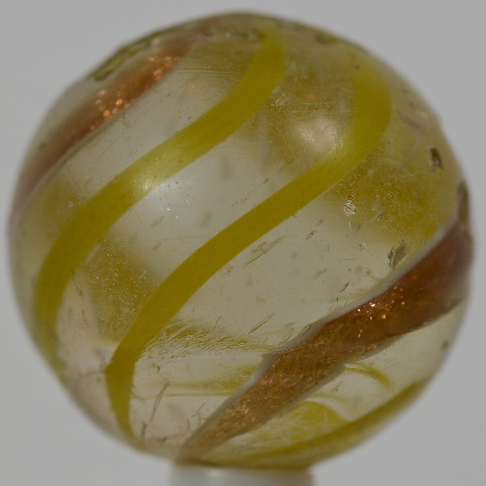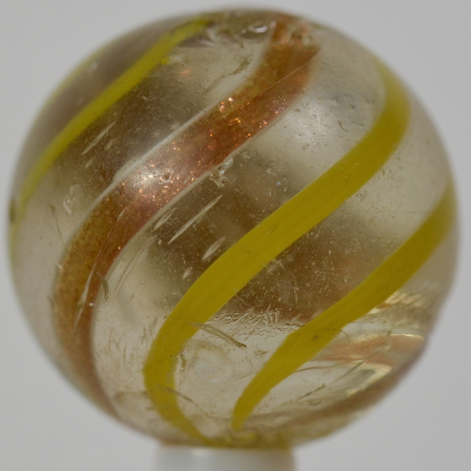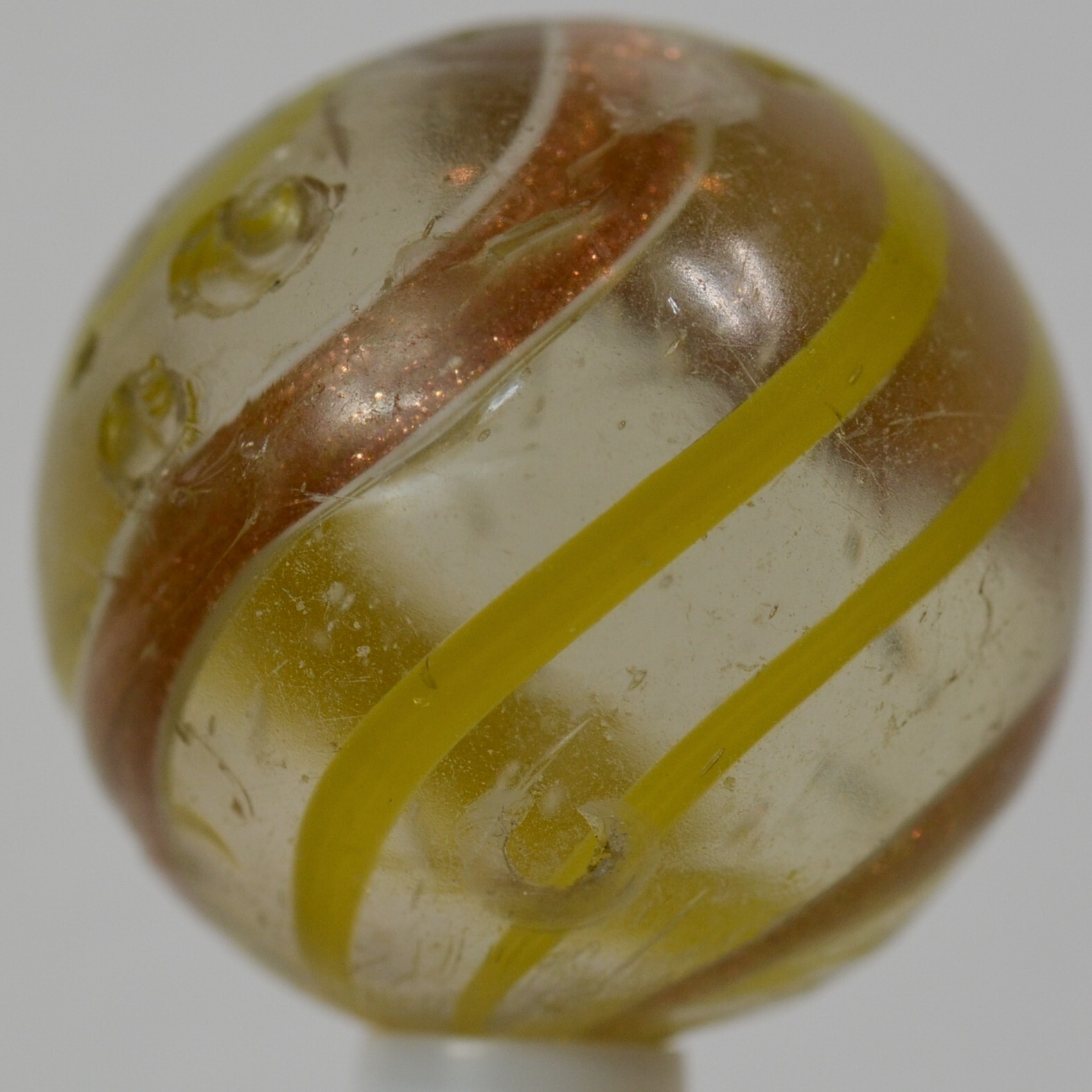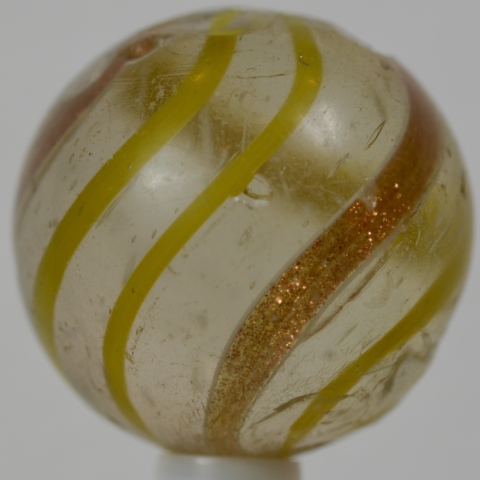 Big Handmade Yellow Banded Lutz Marble, Shooter, 1 inch, Good , Germany, S1266