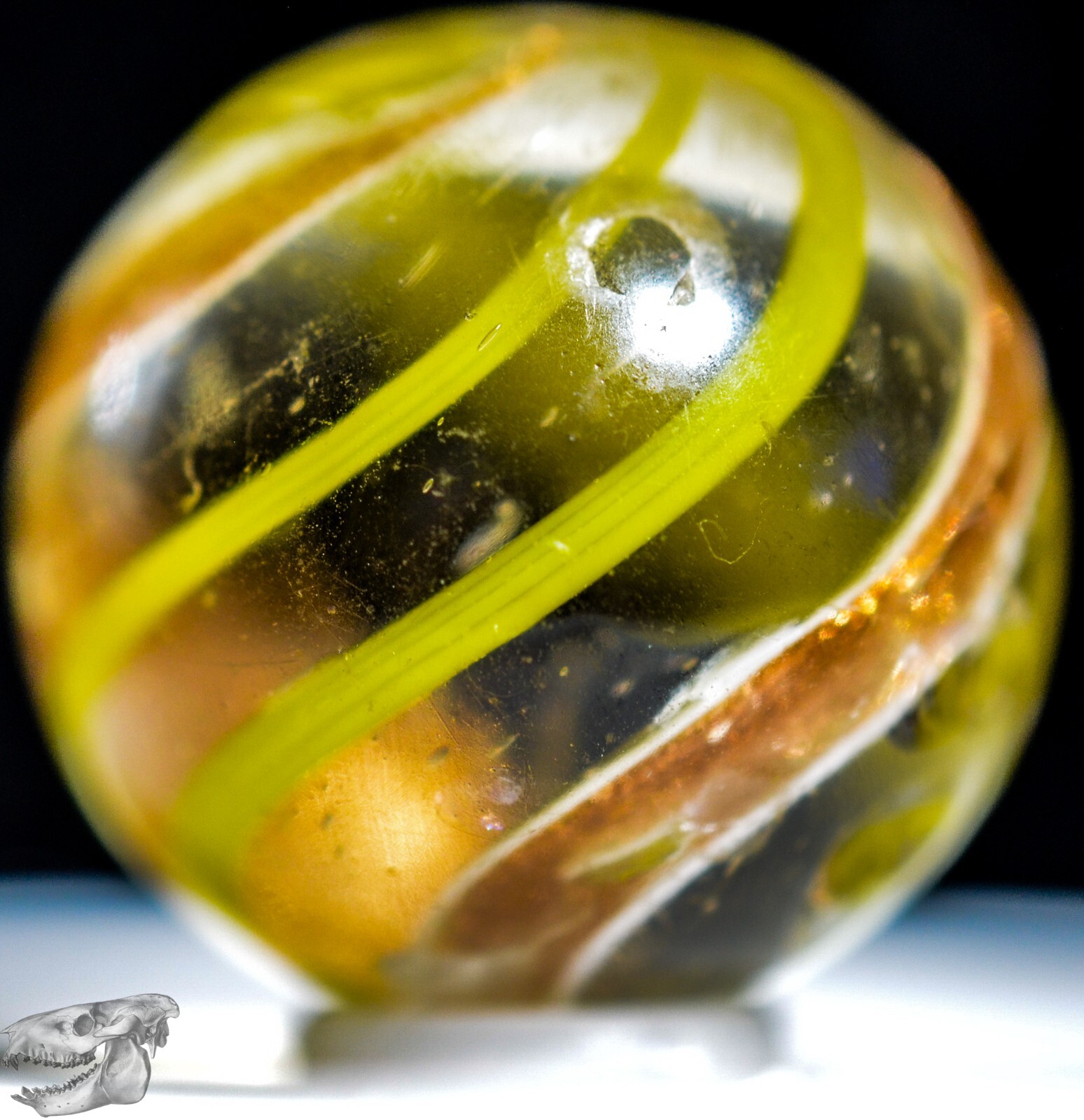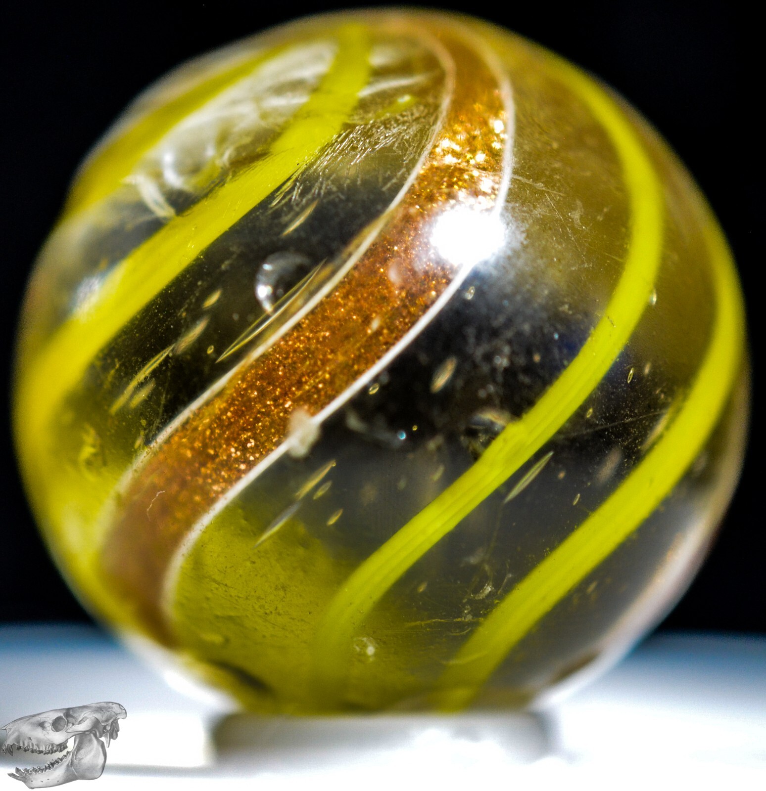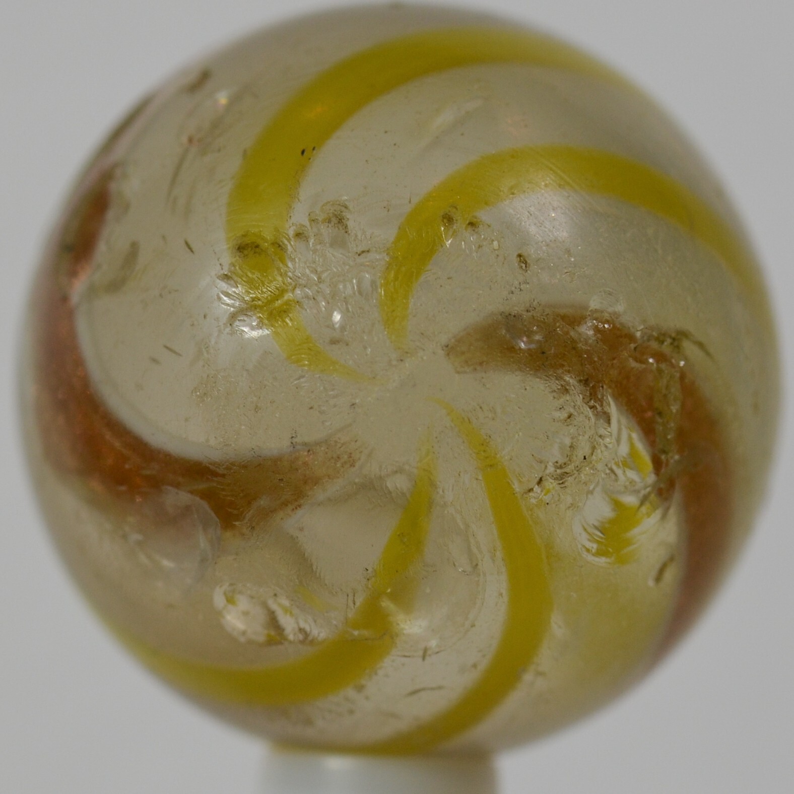 Big Handmade Yellow Banded Lutz Marble, Shooter, 1 inch, Good , Germany, S1266