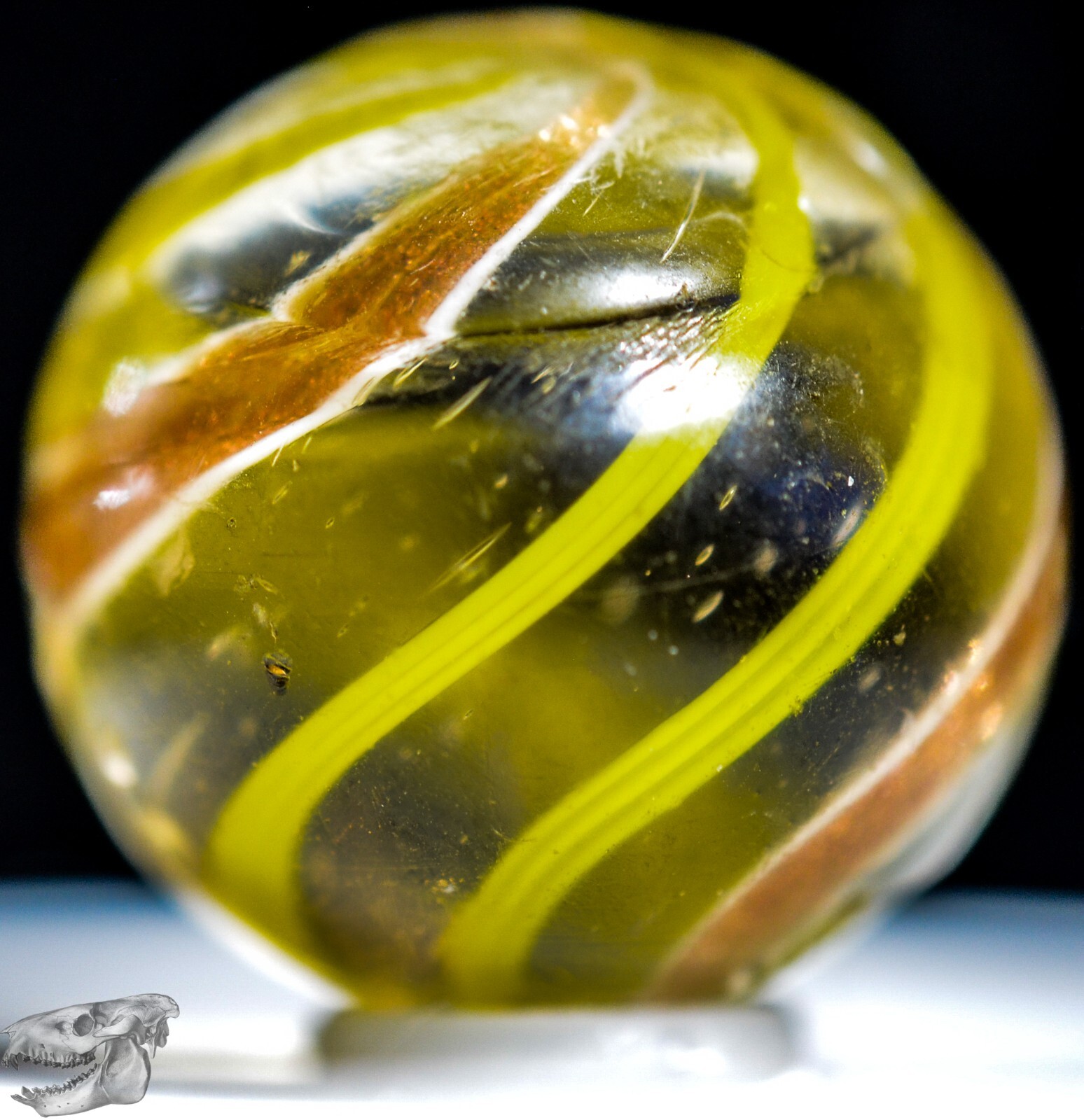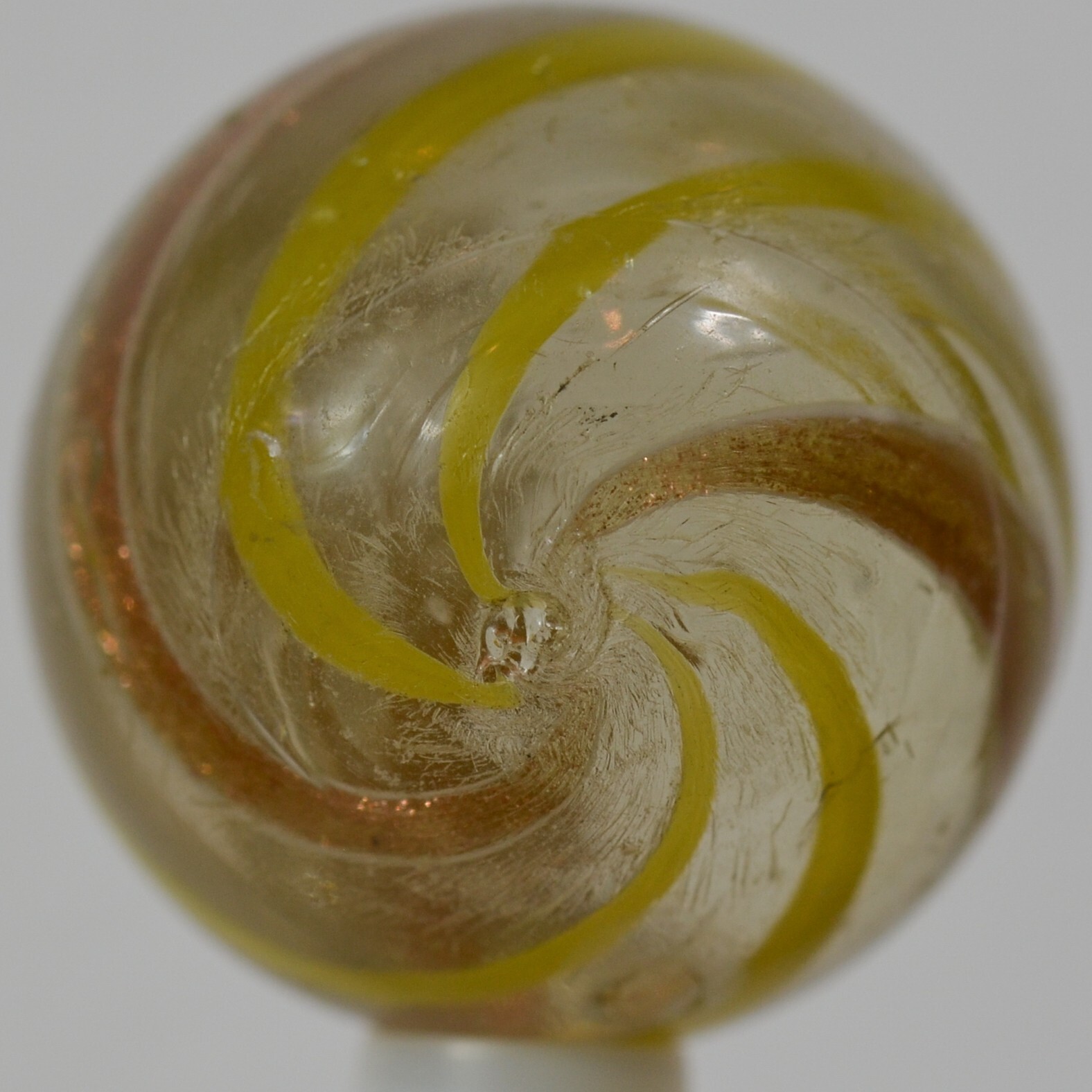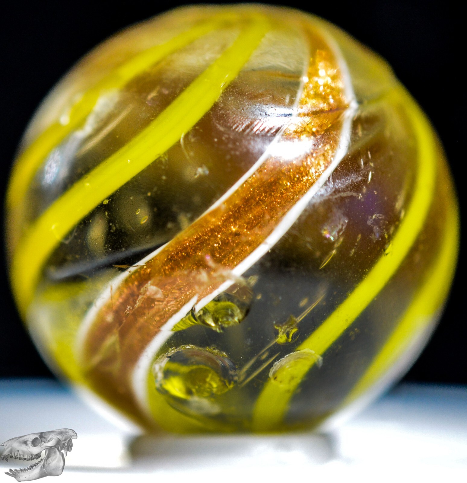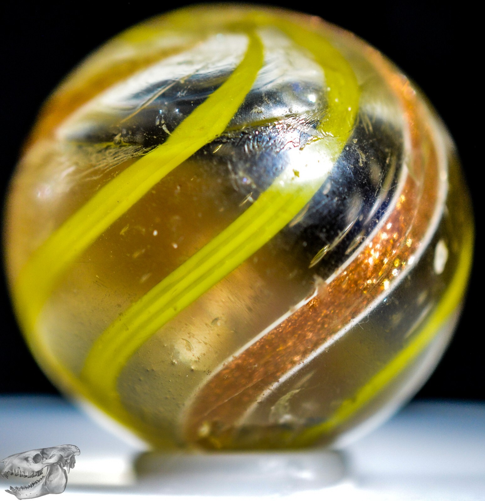 Big Handmade Yellow Banded Lutz Marble, Shooter, 1 inch, Good , Germany, S1266