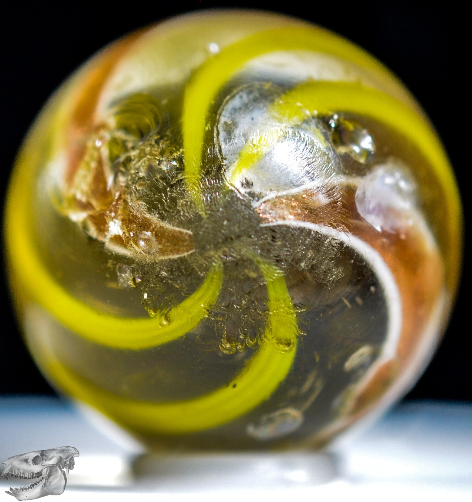 как выглядит Big Handmade Yellow Banded Lutz Marble, Shooter, 1 inch, Good , Germany, S1266 фото