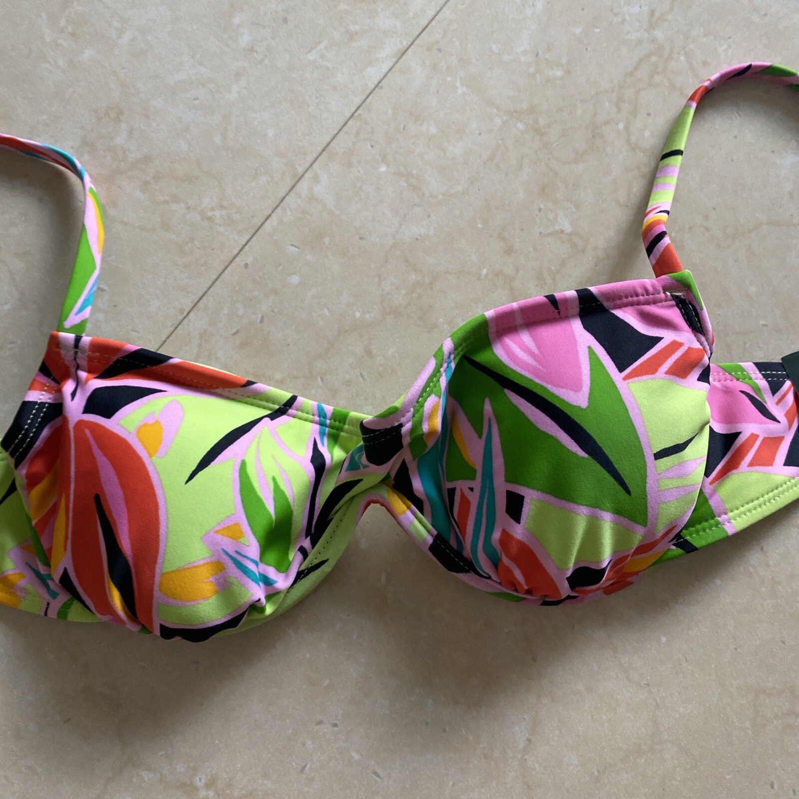 как выглядит Womens Underwire Bralette Bikini Top Wild Fable Tropical Print XS фото