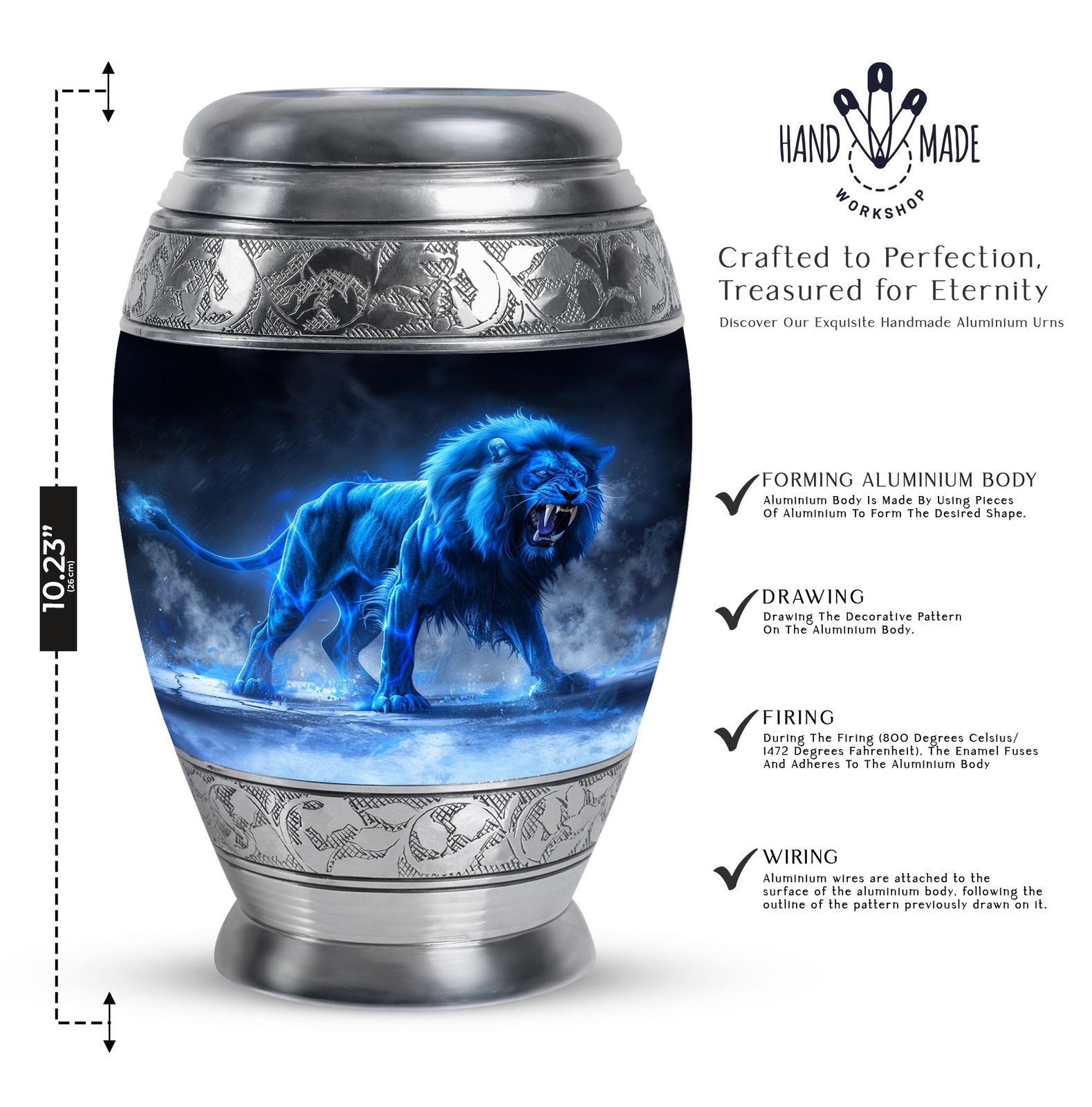 • Lion Large Cremation Urns, Funeral Urns Ashes Adult, 10 Inch