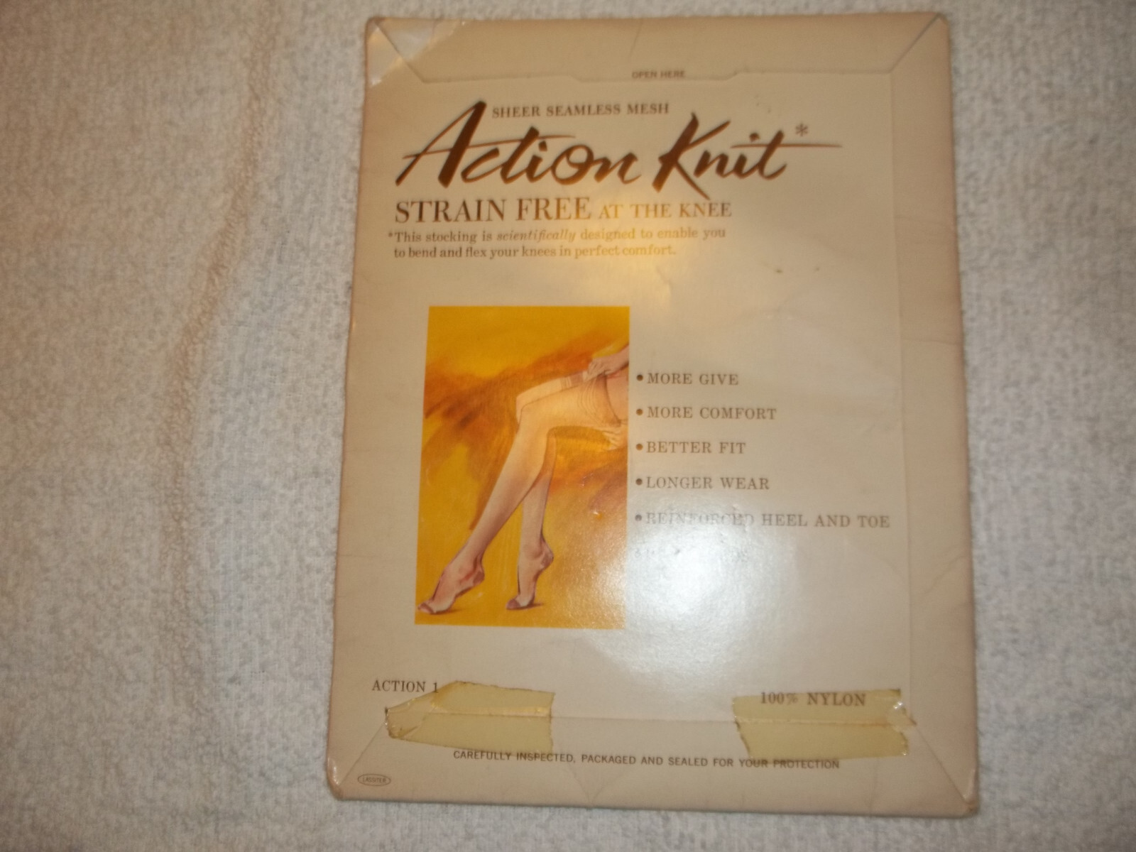 Action Knit nylon stockings seamless mesh size 10 med beige