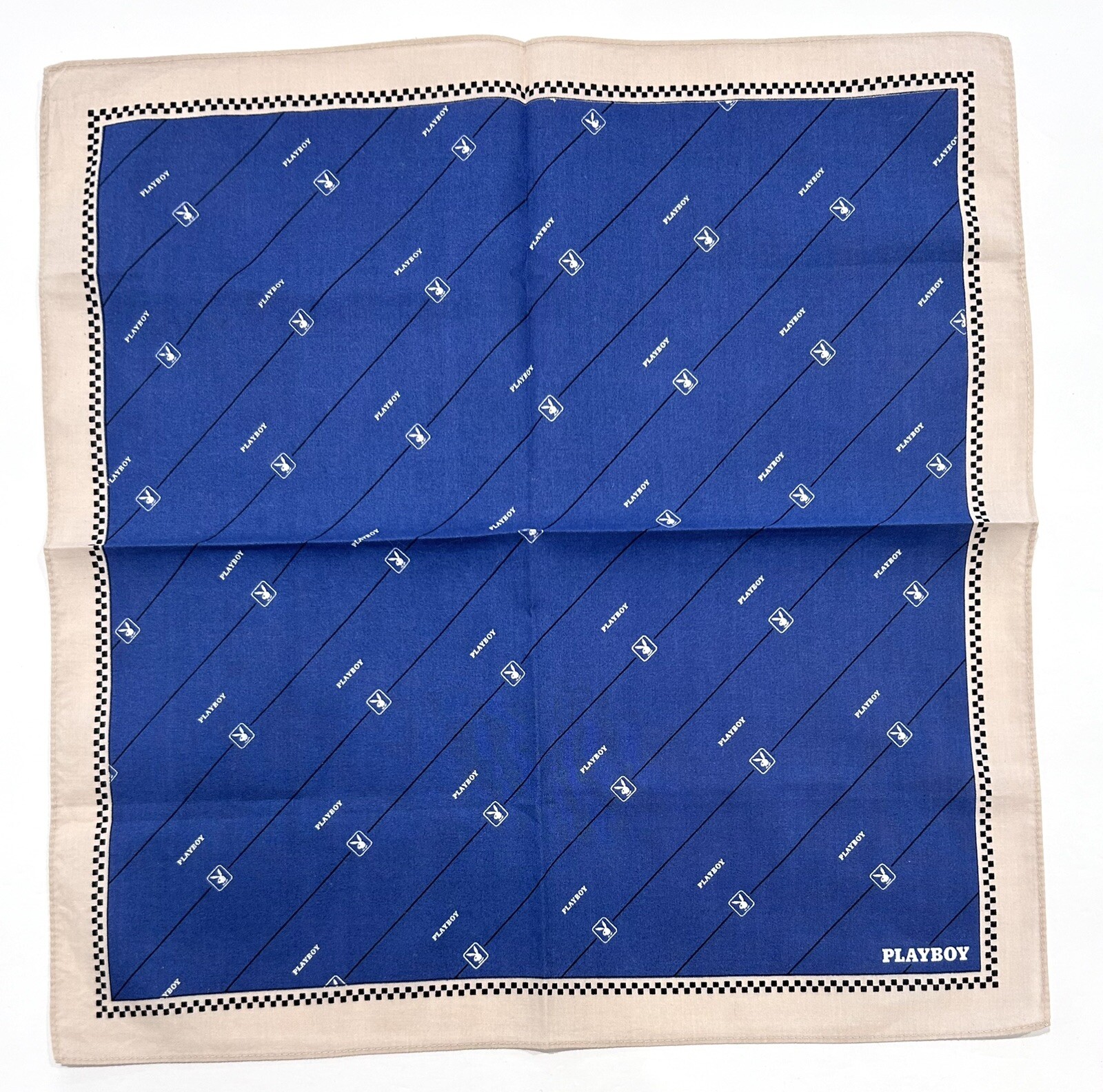 HANDKERCHIEF MEN'S VINTAGE ART BLUE PLAYBOY STRIPED COTTON POCKET SQUARE 16