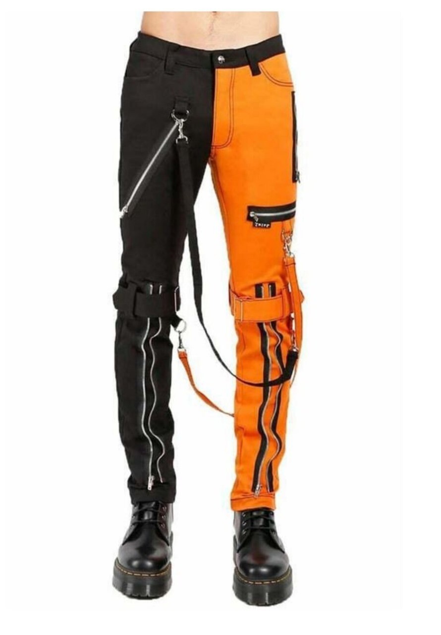 Men Gothic Jeans Punk Rock Pant Trouser Electro Bondage Rave Gothic Cyber Chain