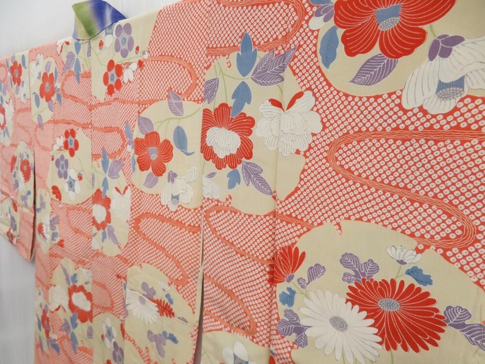 4622T15z540 Antique Japanese Kimono Silk JUBAN Chrysanthemum Sand beige