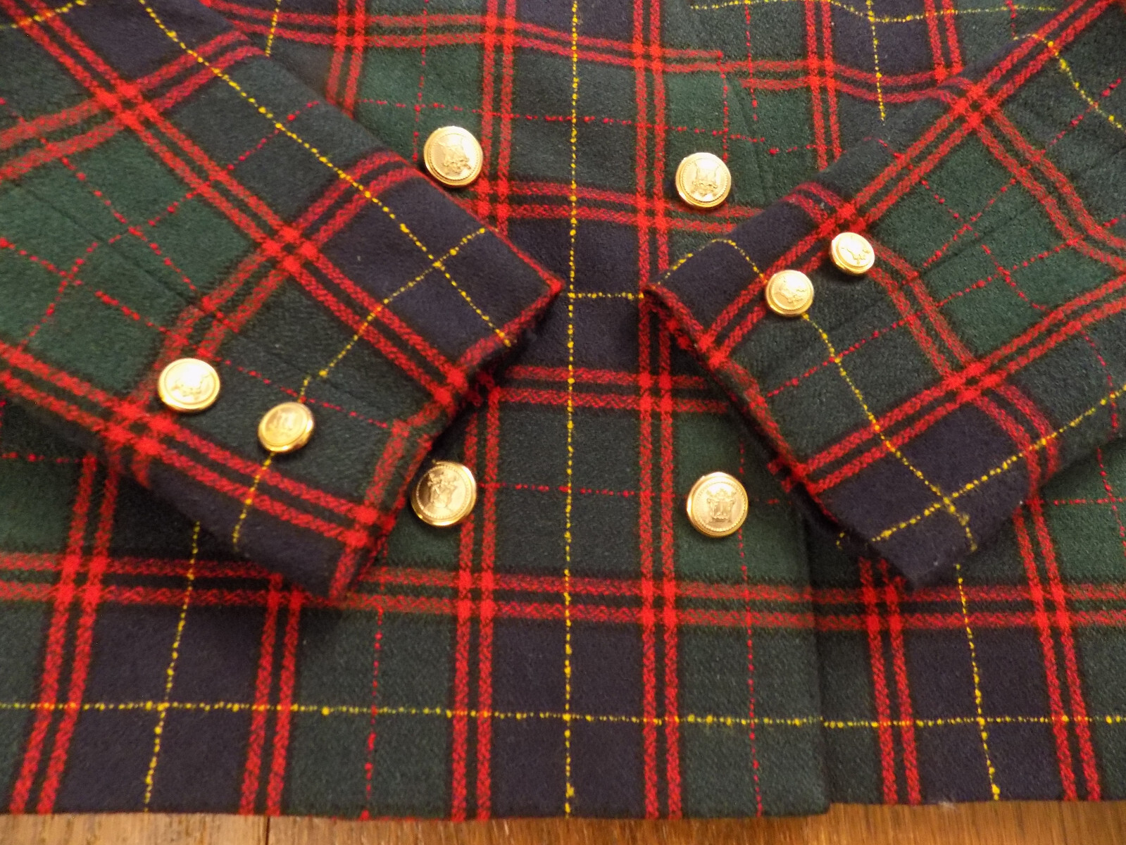 Vtg Union Made Tartan Green Red Plaid Double Breasted Blazer Tan Jay Petite 6P