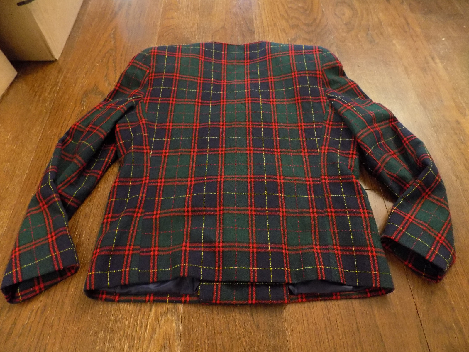 как выглядит Vtg Union Made Tartan Green Red Plaid Double Breasted Blazer Tan Jay Petite 6P фото