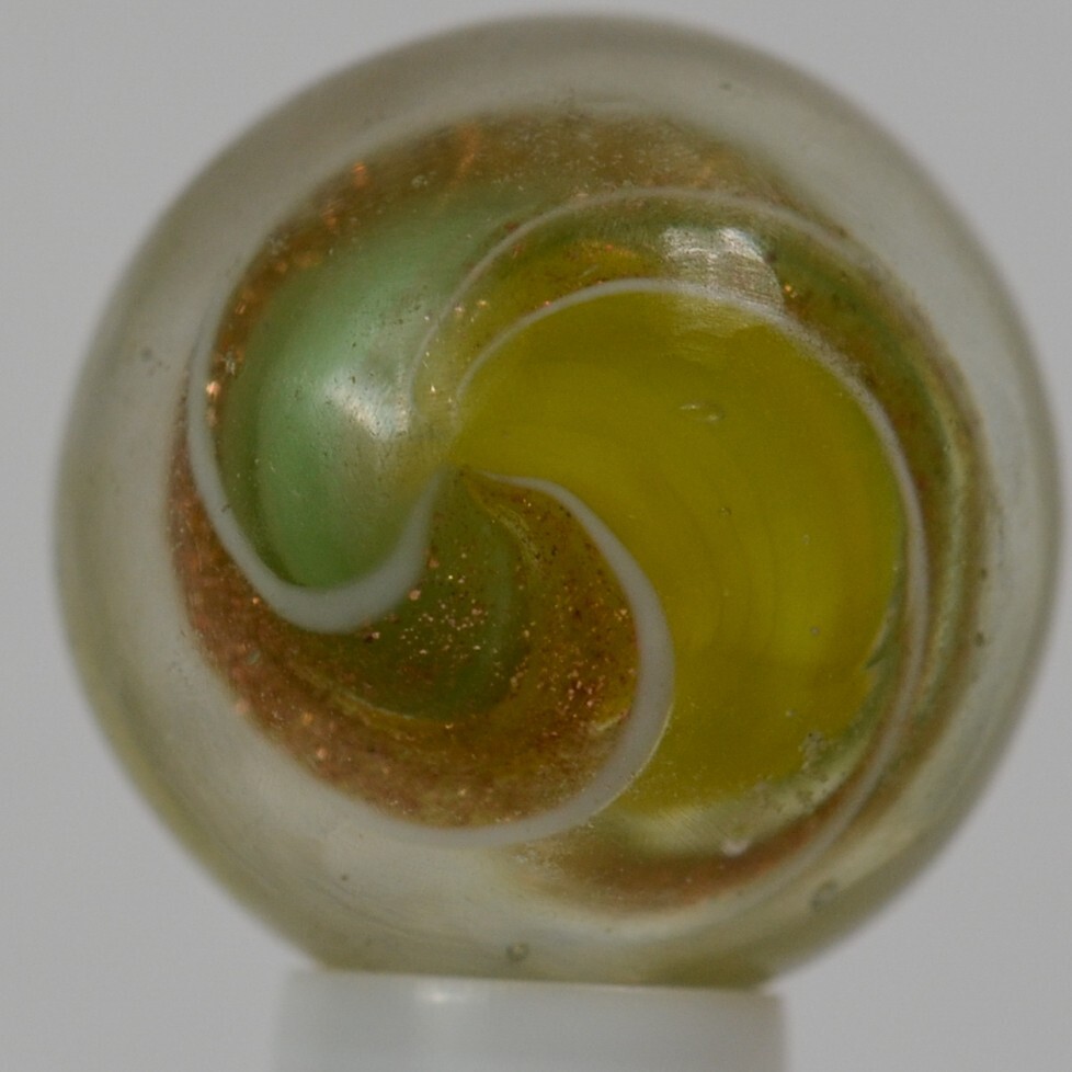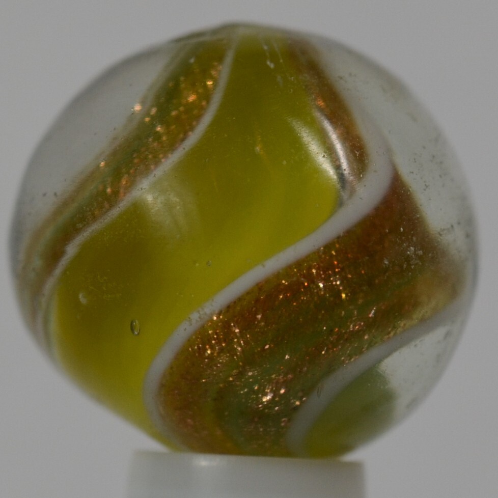 Handmade Yellow and Blue Ribbon Lutz Marble, 5/8 in, Polished, Germany, S1323