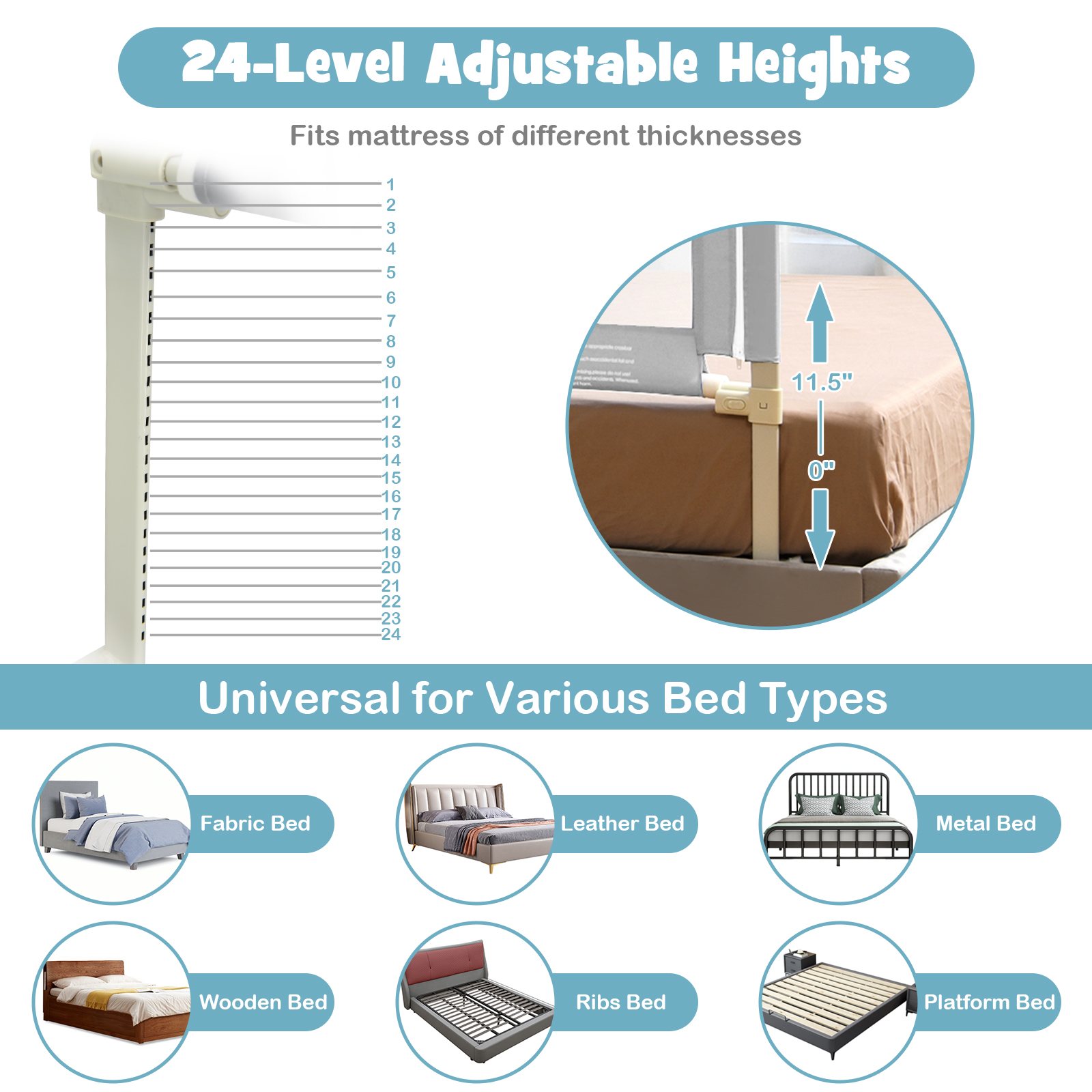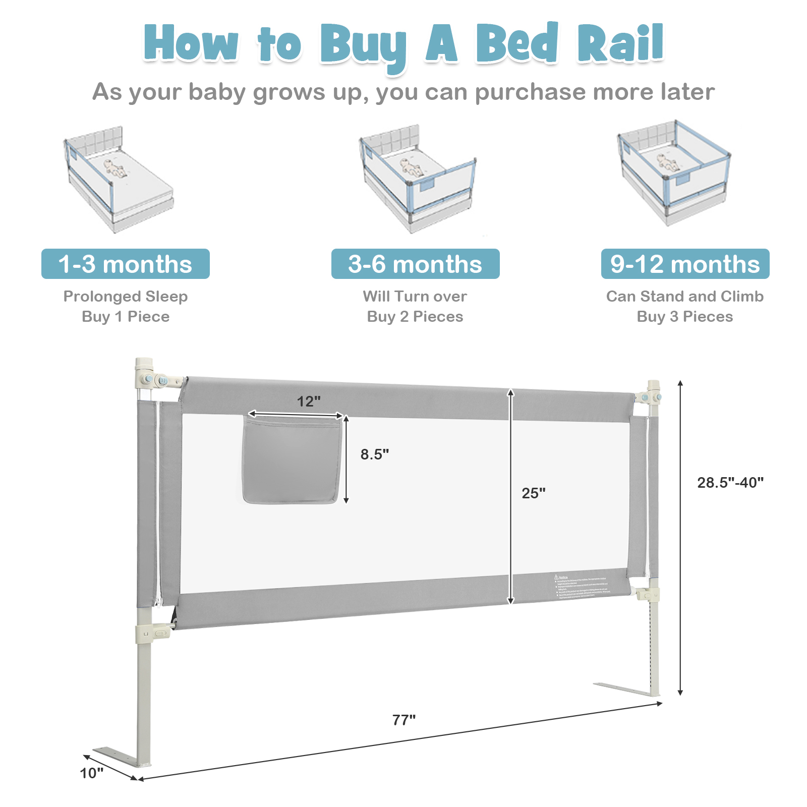 77 Bed Rails for Toddlers Vertical Lifting Baby Bed Rail Guard w/Lock Grey