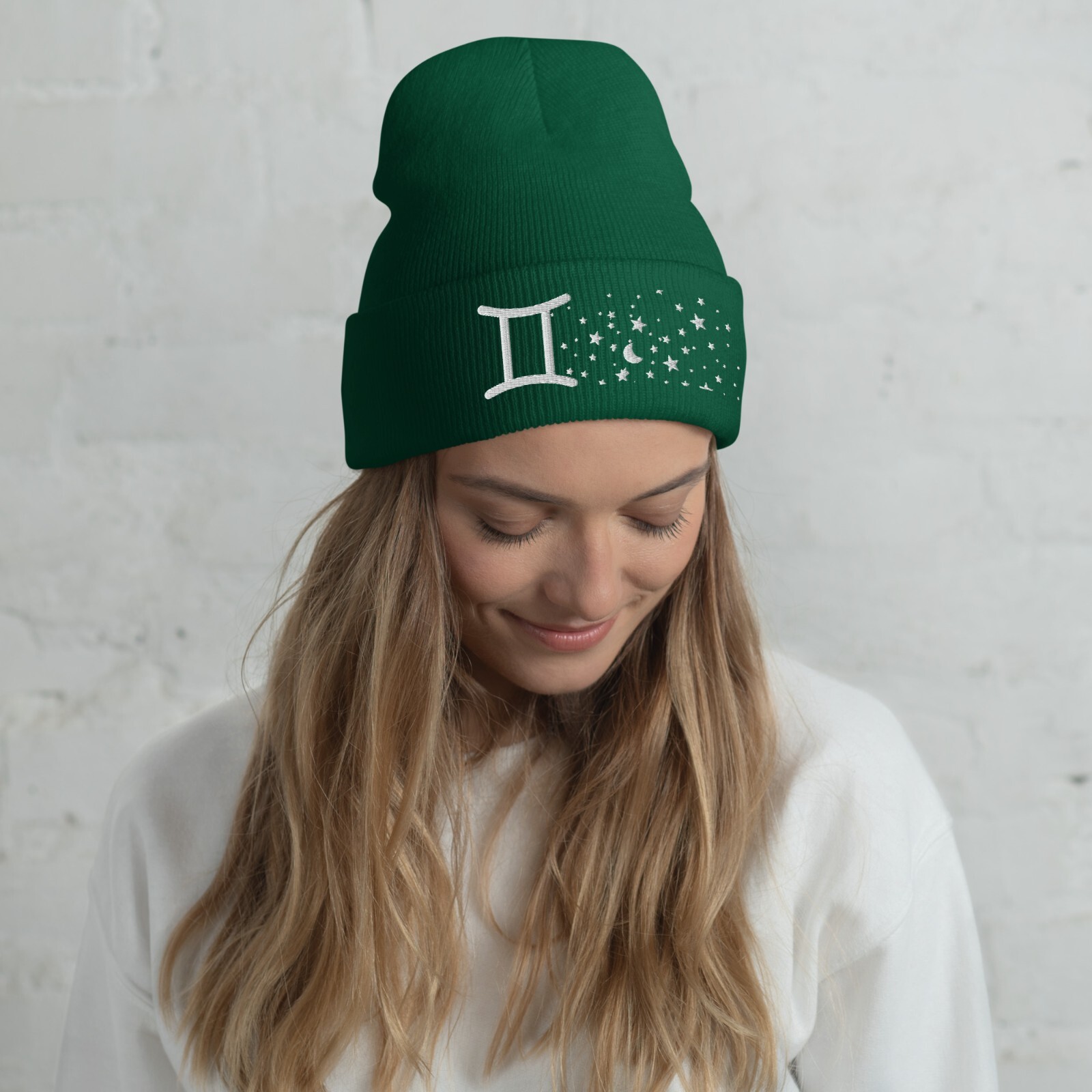 Gemini Twins in the Stars Knit Beanie - Cozy Knit Hat Spruce Green