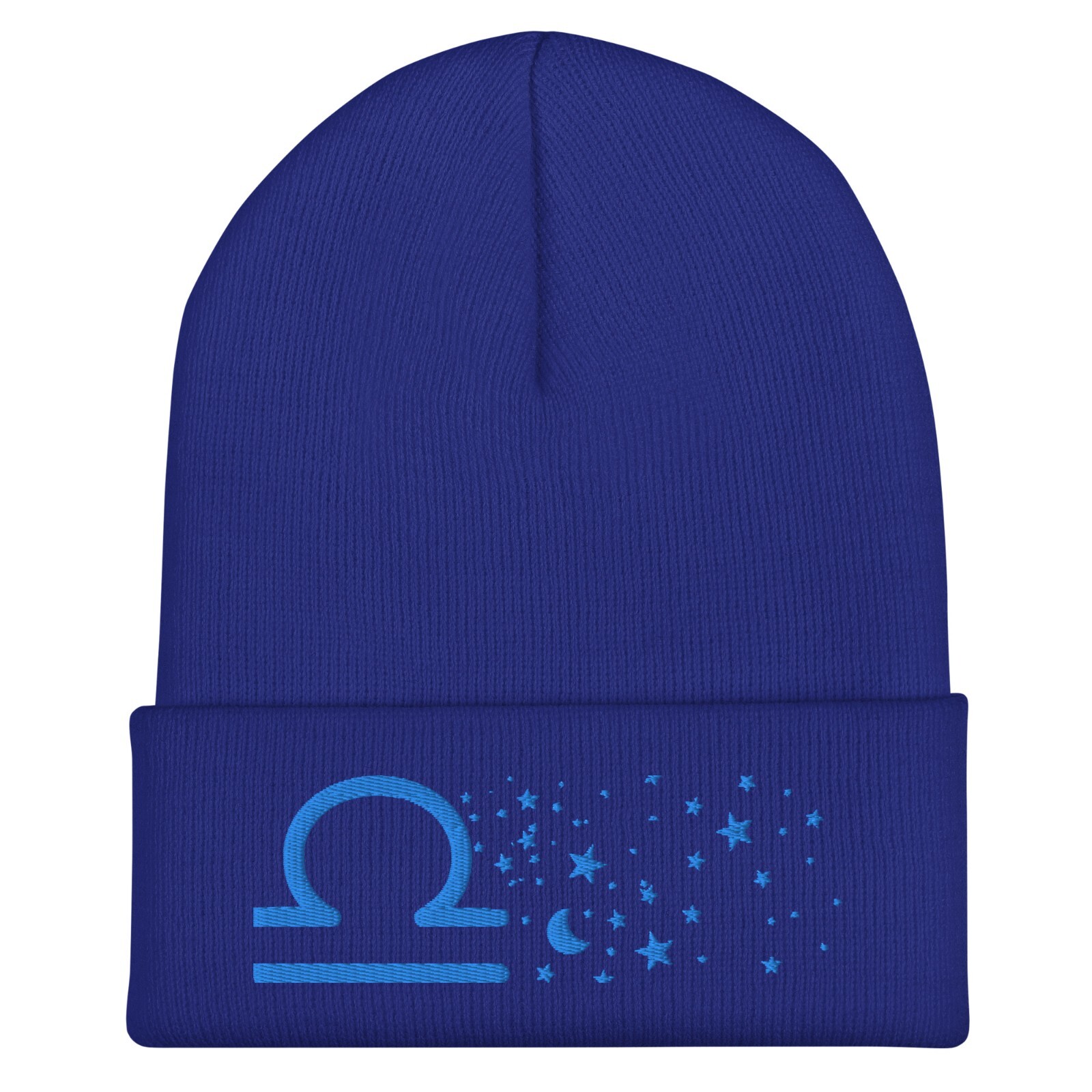 Libra Scales in the Stars Knit Beanie - Cozy Knit Hat Royal Blue