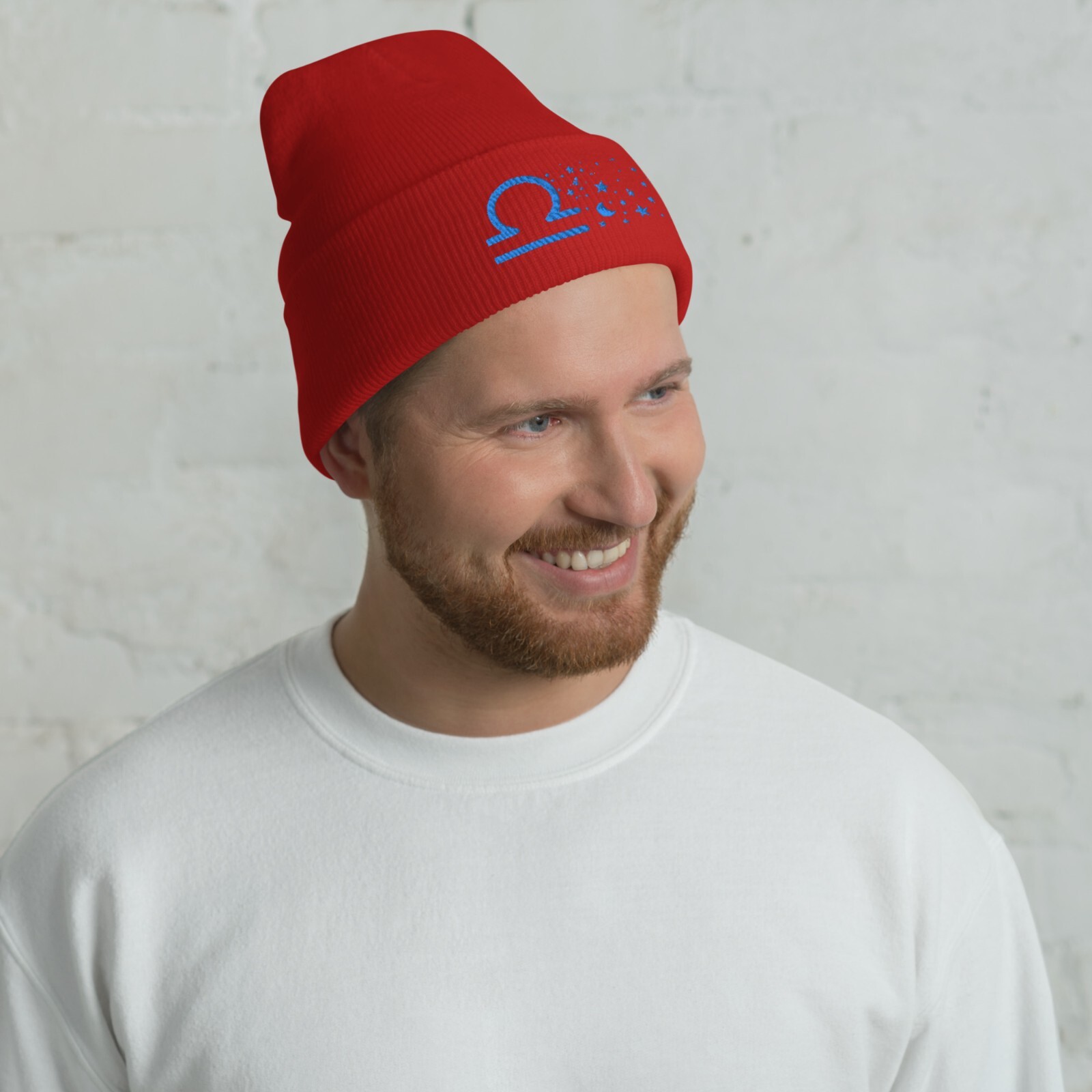 Libra Scales in the Stars Knit Beanie - Cozy Knit Hat Red