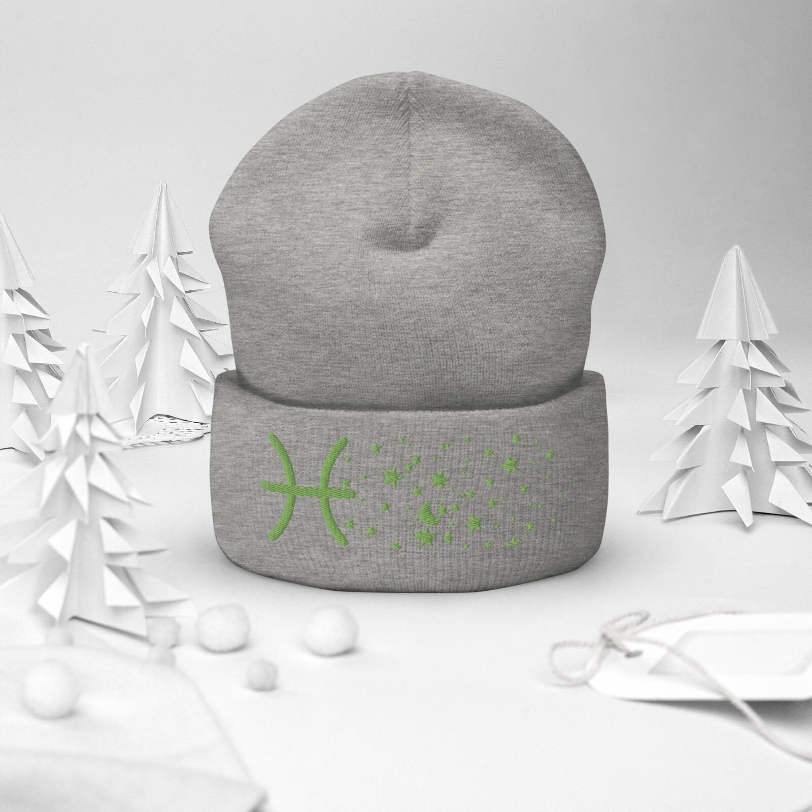 Pisces in the Stars Knit Beanie - Cozy Knit Hat Heather Grey