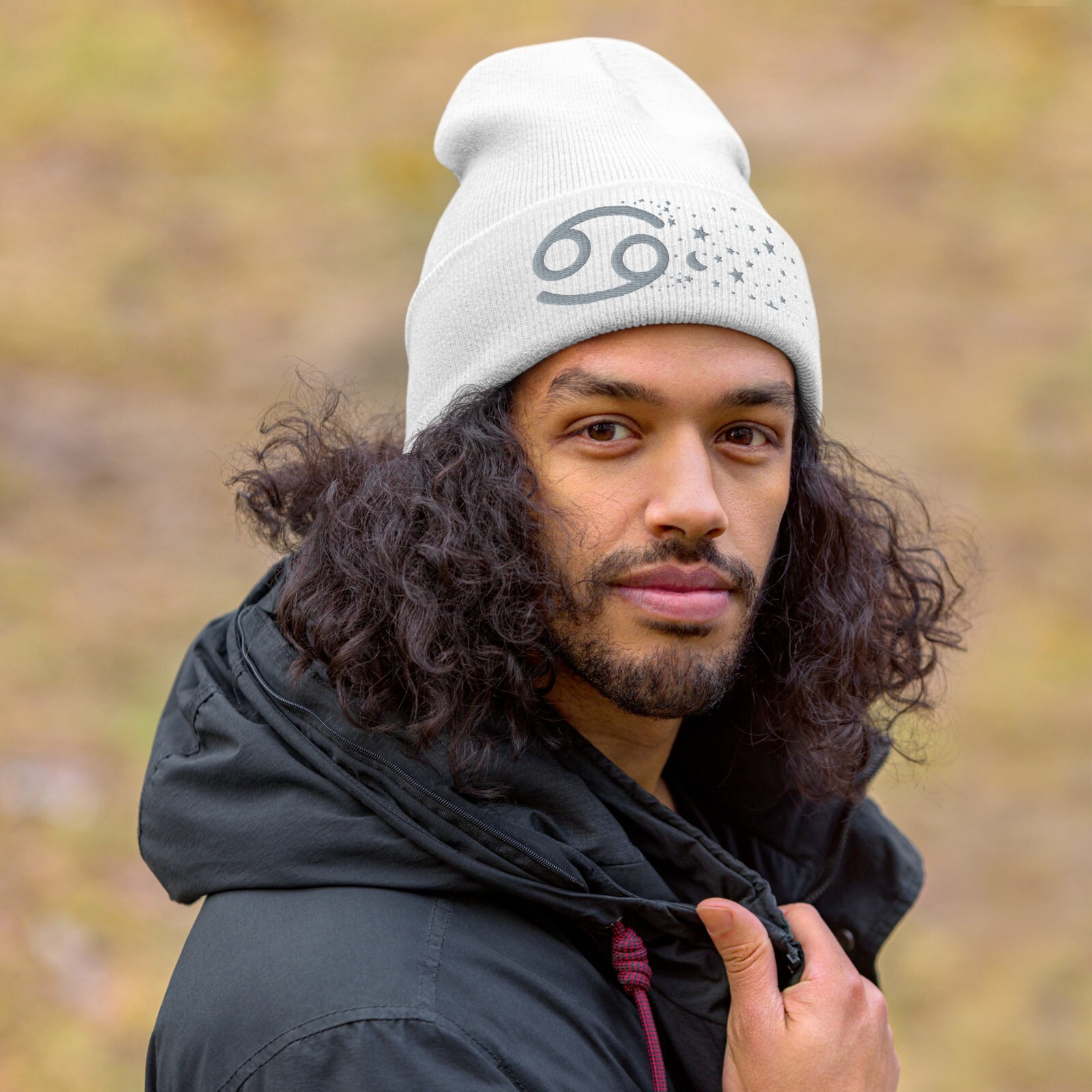 как выглядит Cancer Crab in the Stars Knit Beanie - Cozy Knit Hat White фото