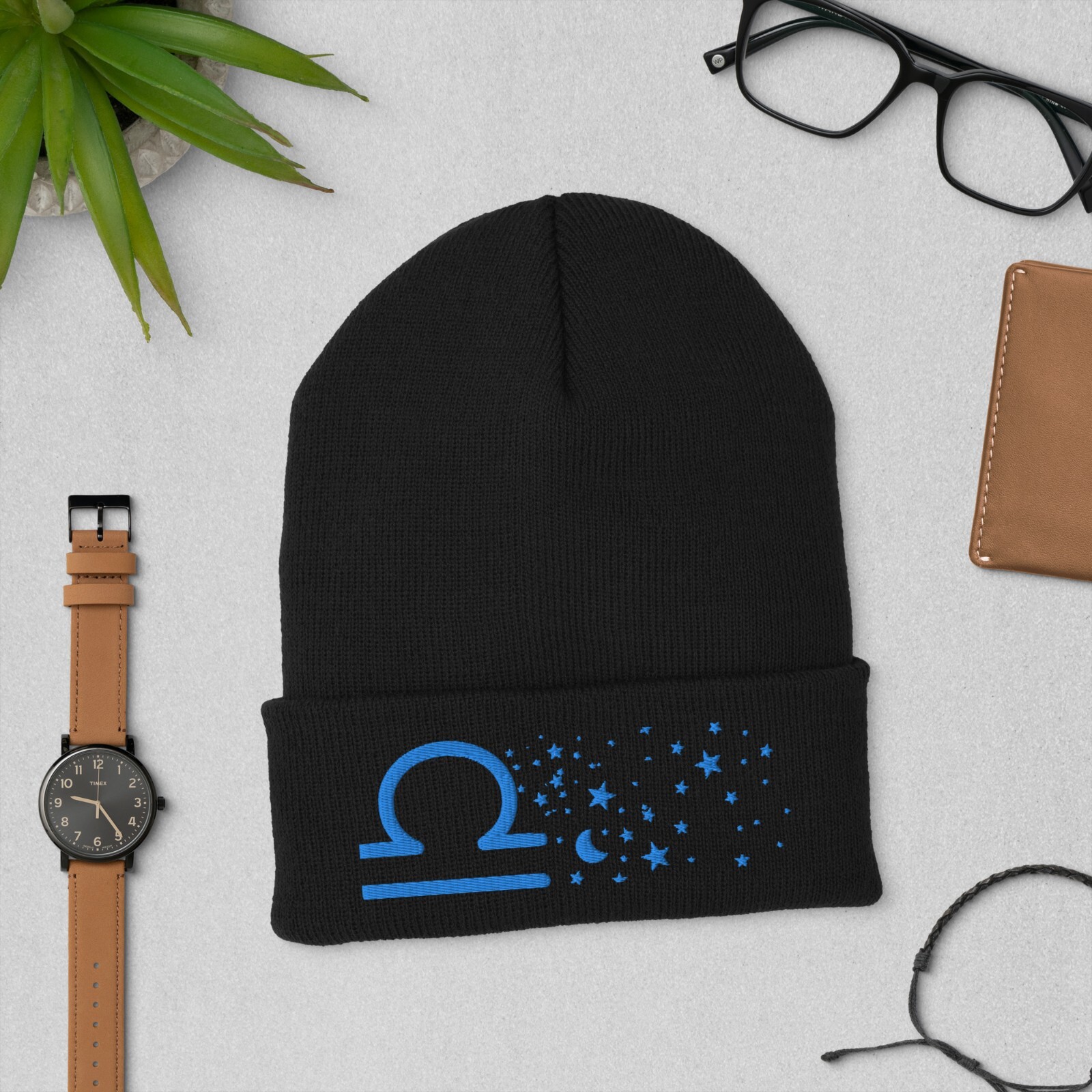Libra Scales in the Stars Knit Beanie - Cozy Knit Hat Black