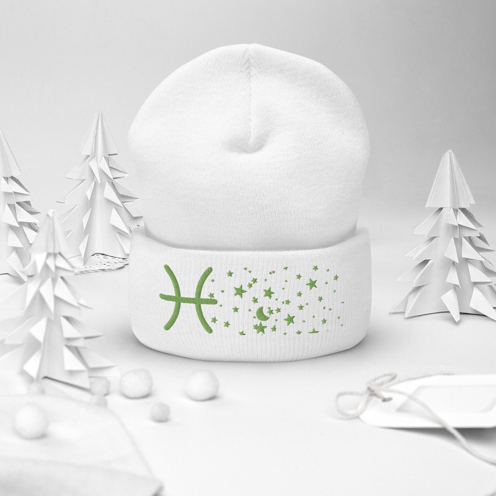 Pisces in the Stars Knit Beanie - Cozy Knit Hat White