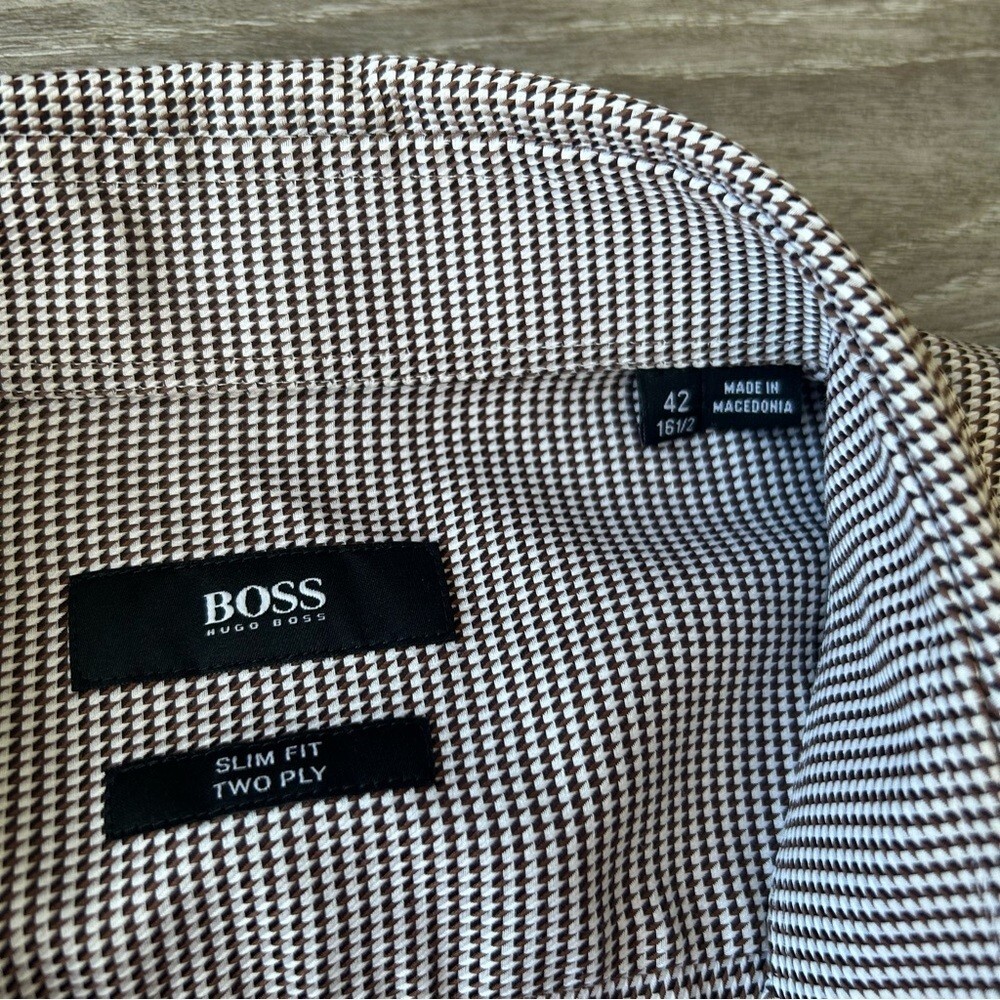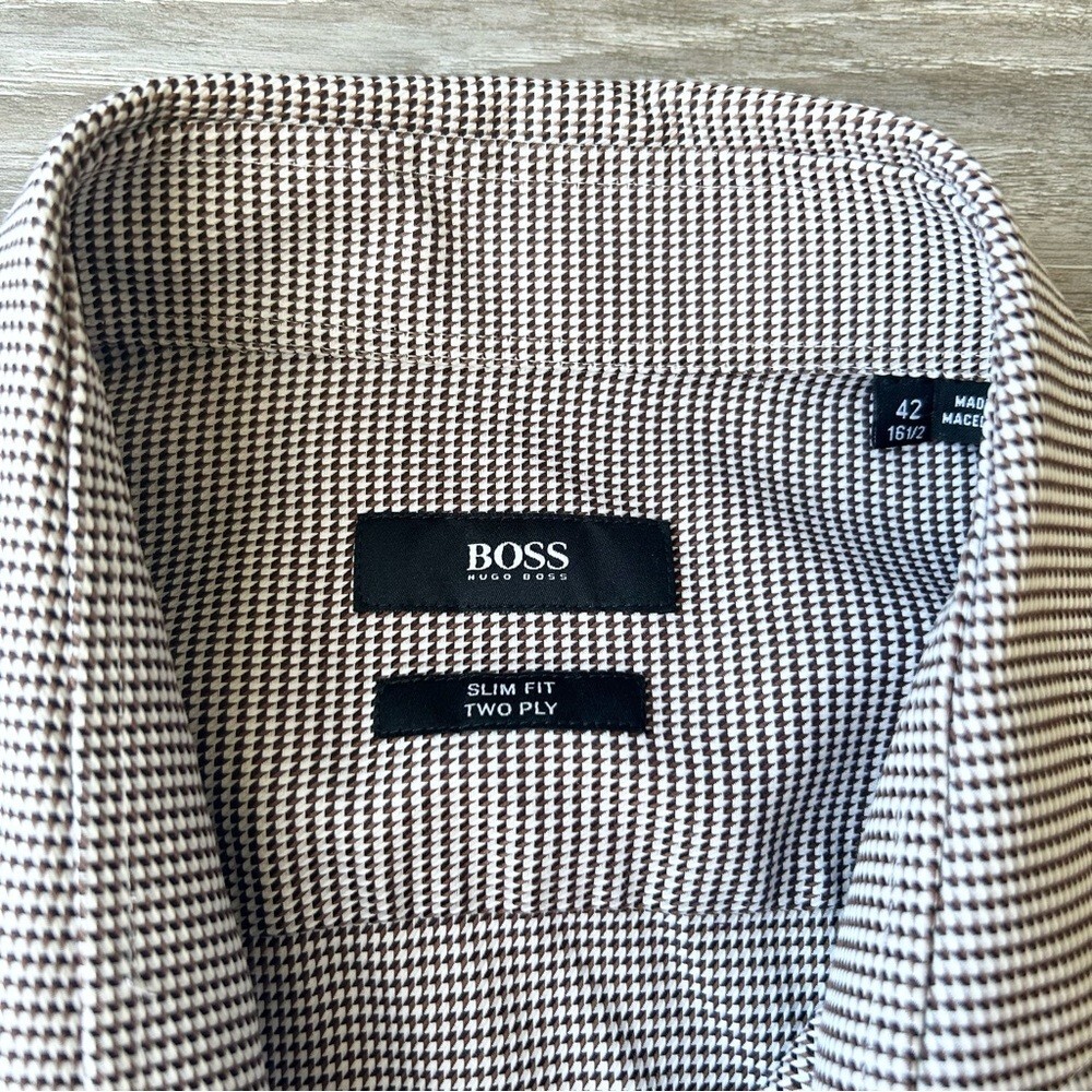 как выглядит Hugo Boss Pure Cotton Jacquard Pattern Slim Fit Shirt Size 16.5 фото