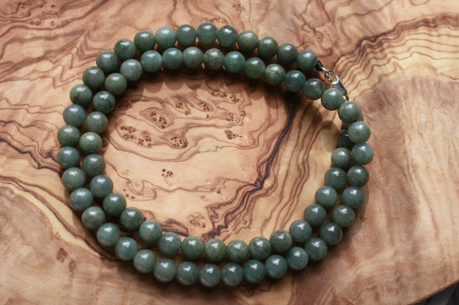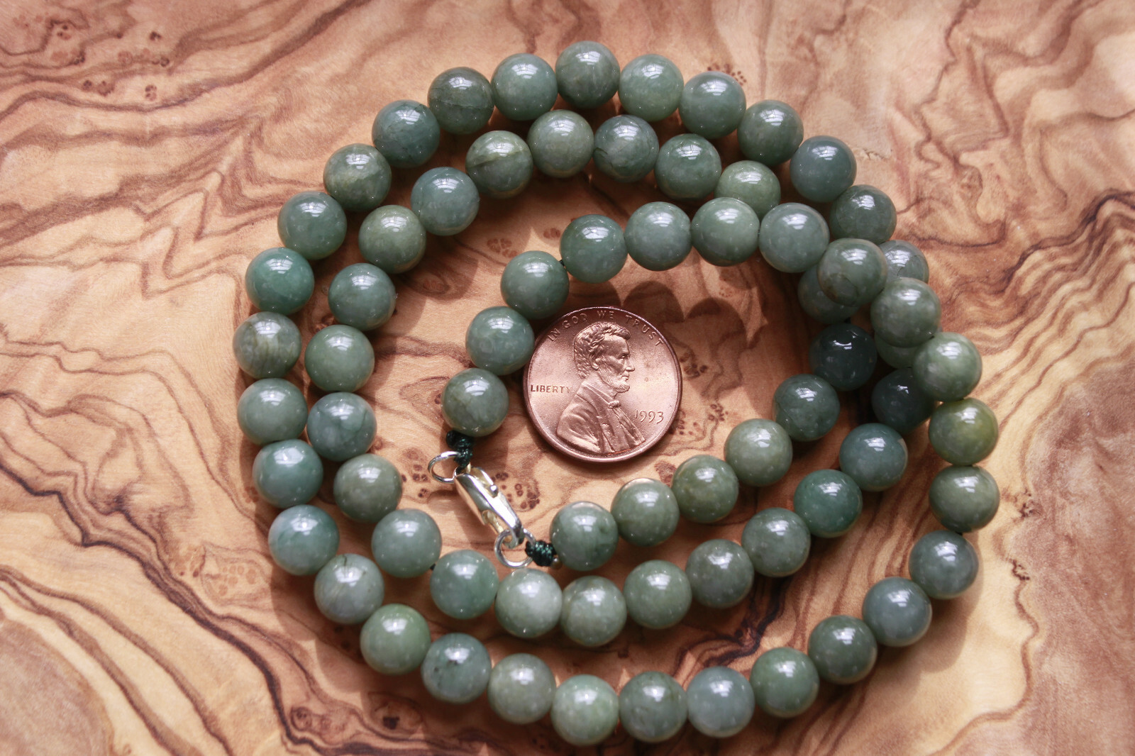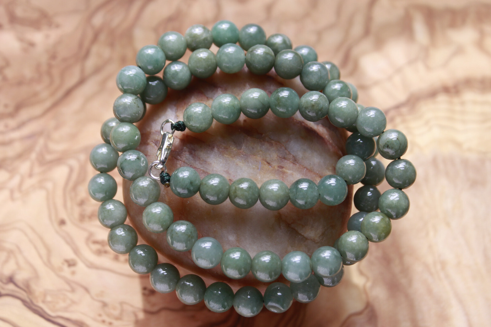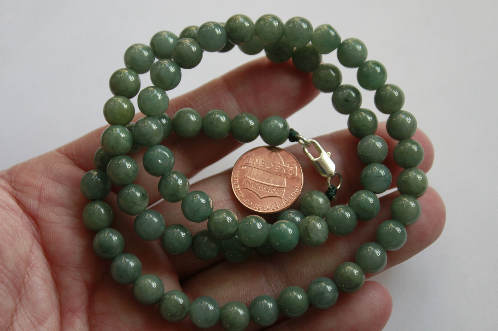 как выглядит 100 Natural Jadeite Untreated Grade A Beautiful Oily Green Jade Necklace N287 фото