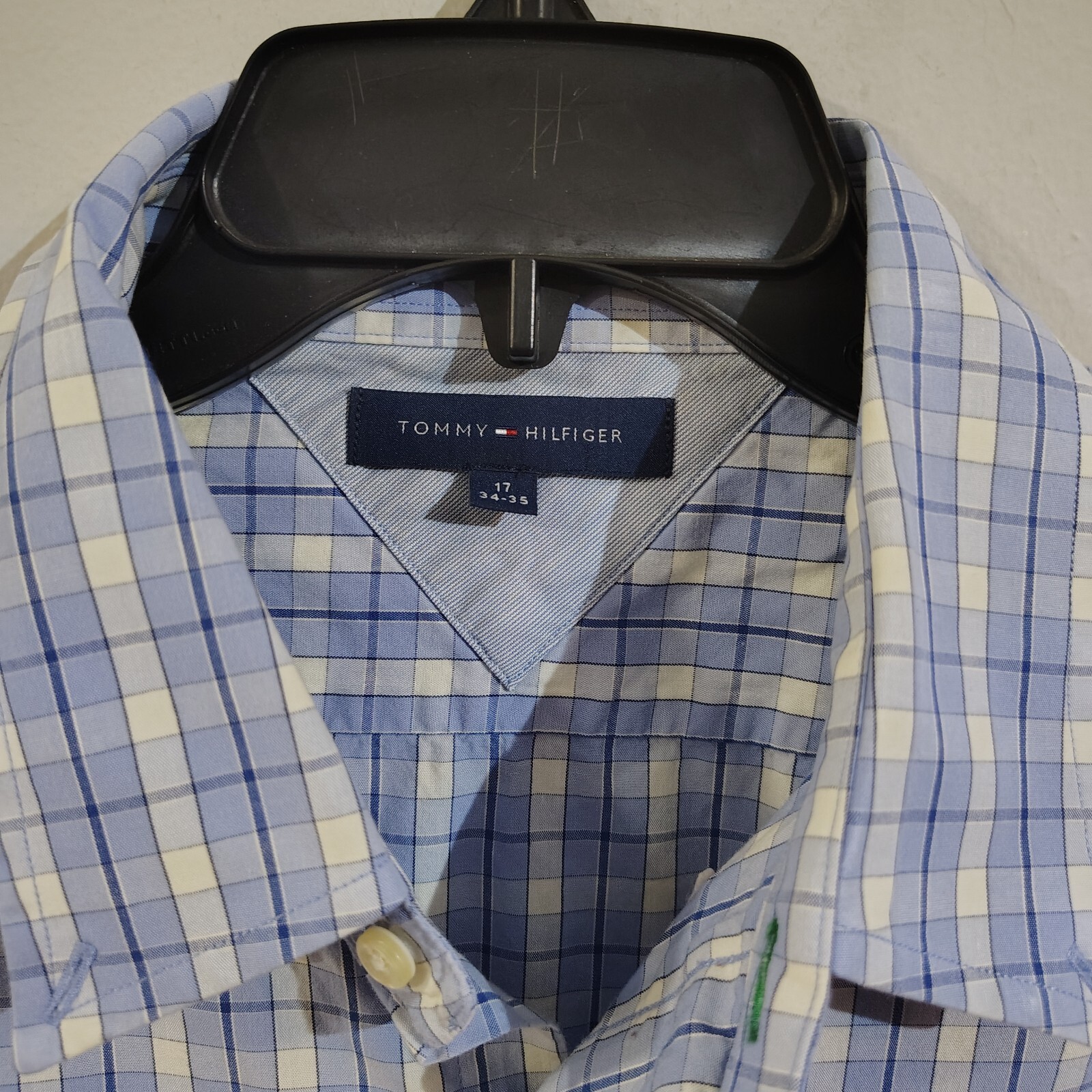 как выглядит Tommy Hilfiger Mens Blue Long Sleeve Button Up Light Blue Checker Shirt SZ LG фото