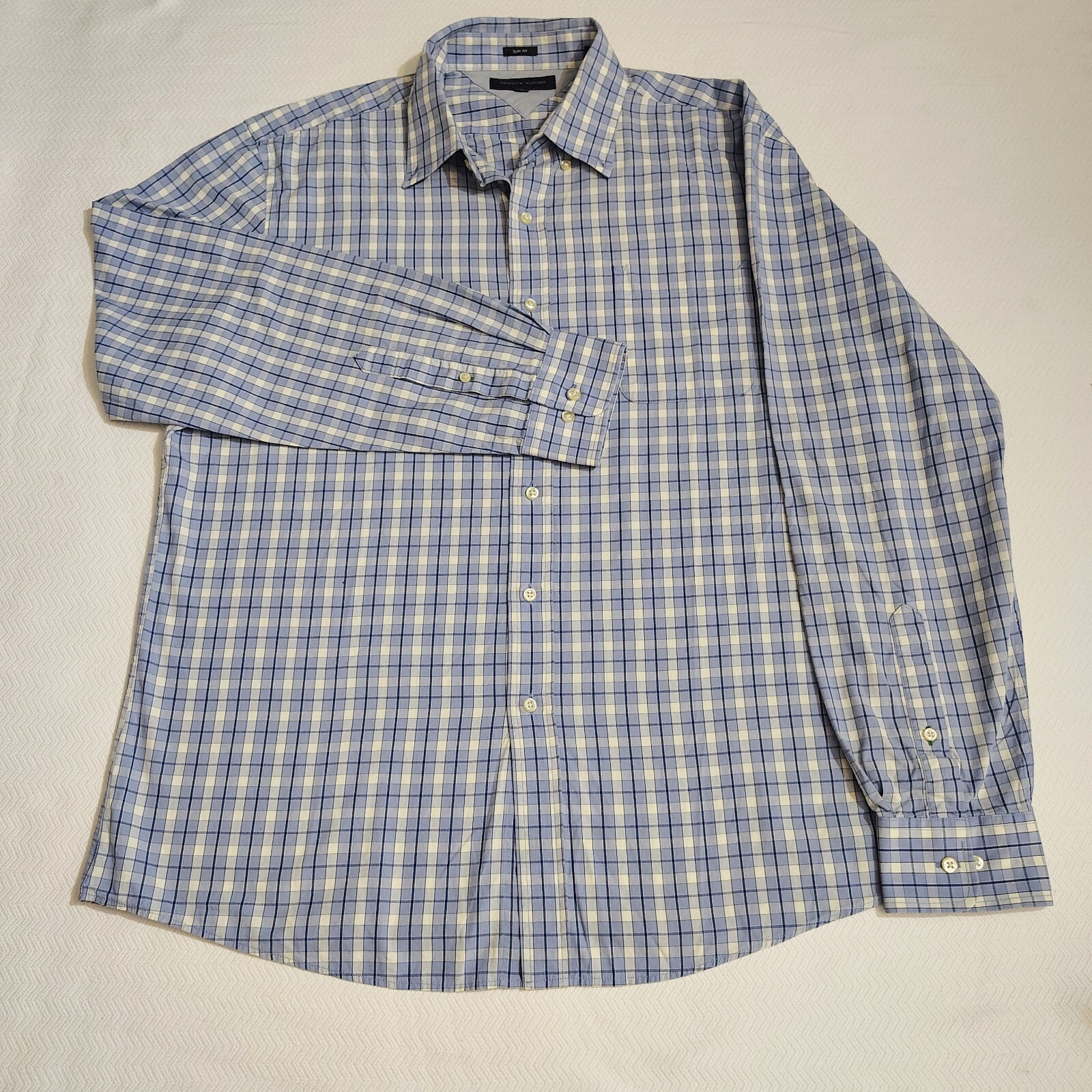 Tommy Hilfiger Mens Blue Long Sleeve Button Up Light Blue Checker Shirt SZ LG