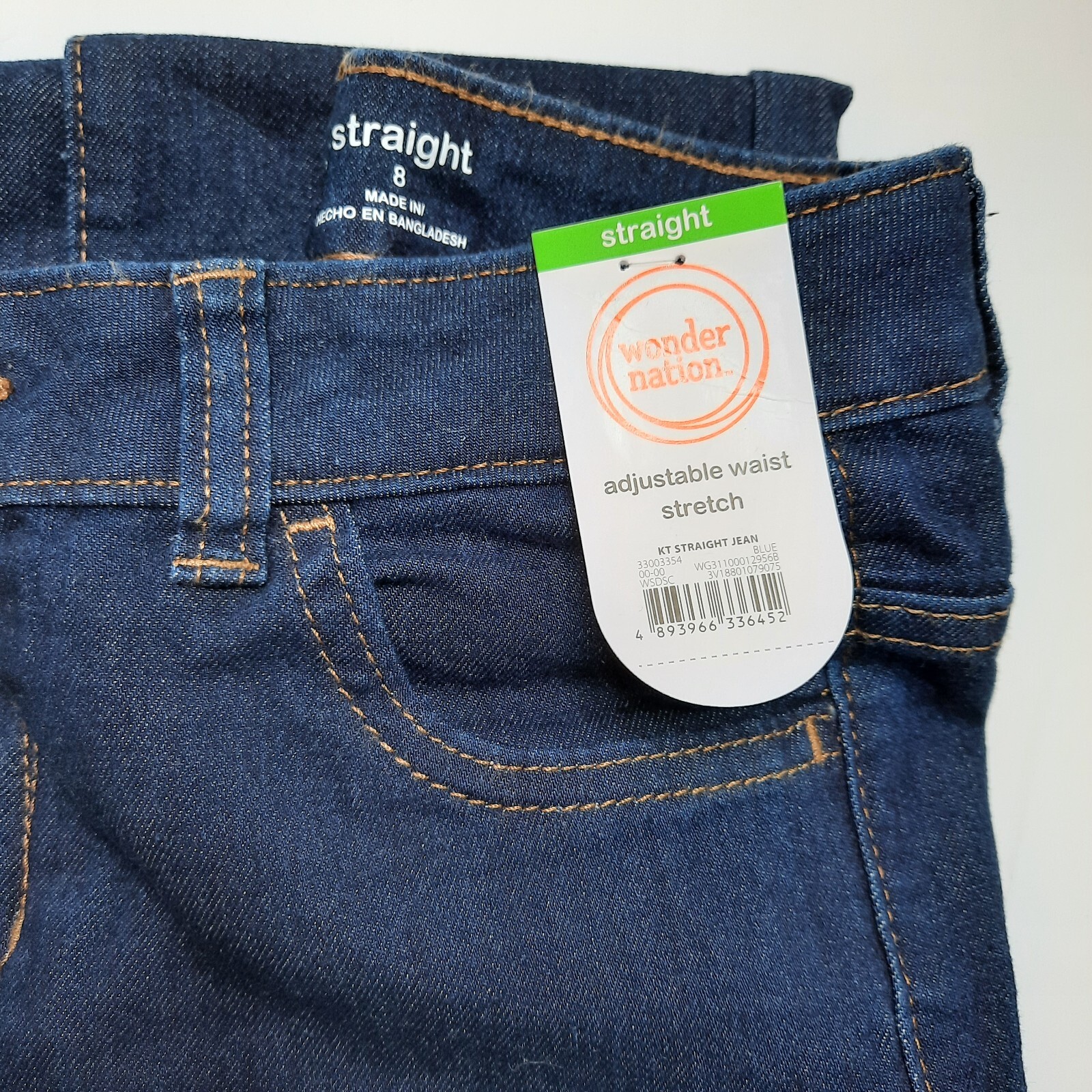 Girls Straight 8 Jeans Denim Dark Blue Adjustable Waist Stretch Wonder Nation
