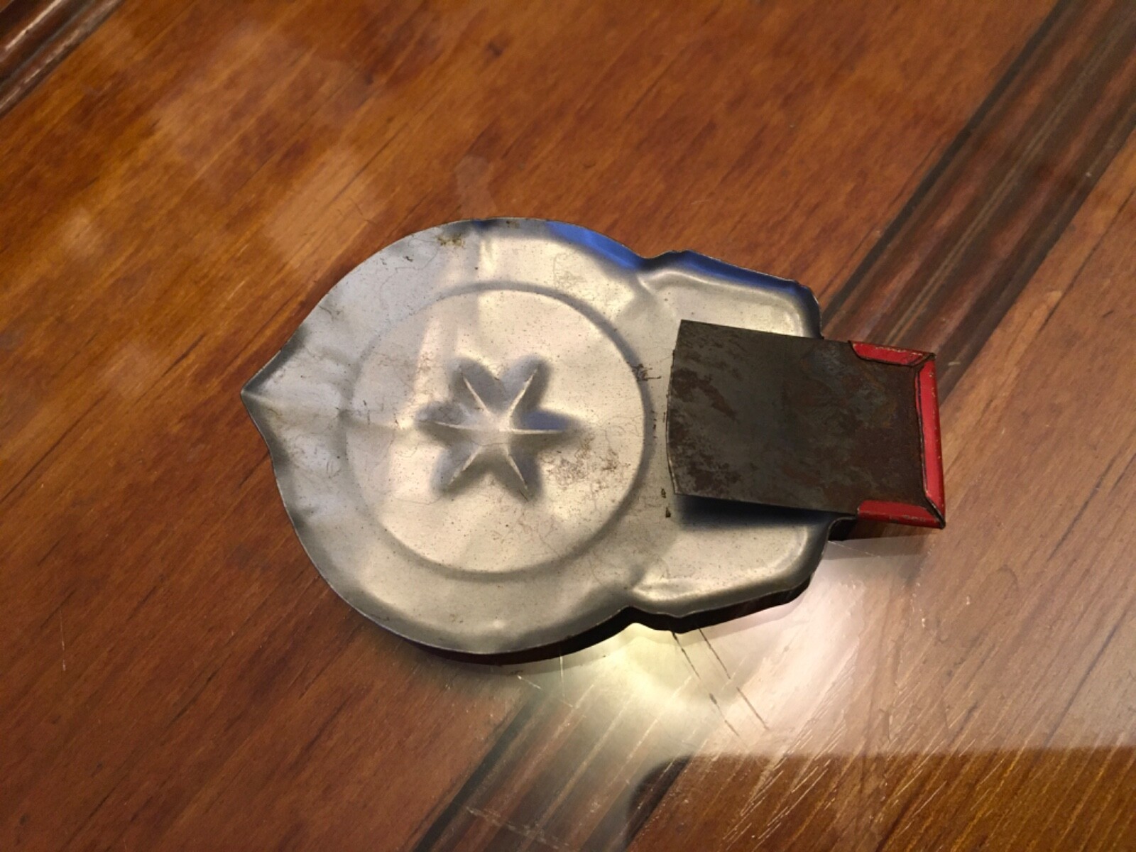 как выглядит VINTAGE TOY POLICE DEPT BADGE TIN LITHO CLICKER MADE IN JAPAN Lo17 фото