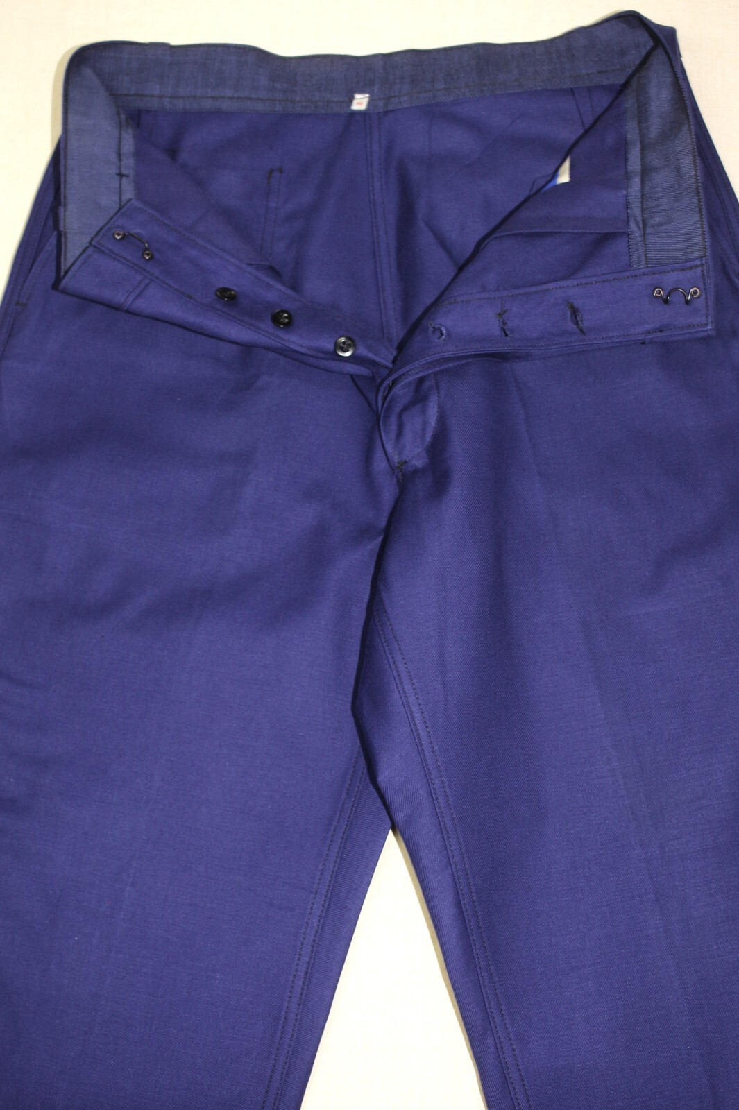 New French 60s Blue Indigo Cotton Twill Work Chore Peasant Pants BARBE BLEUE W36