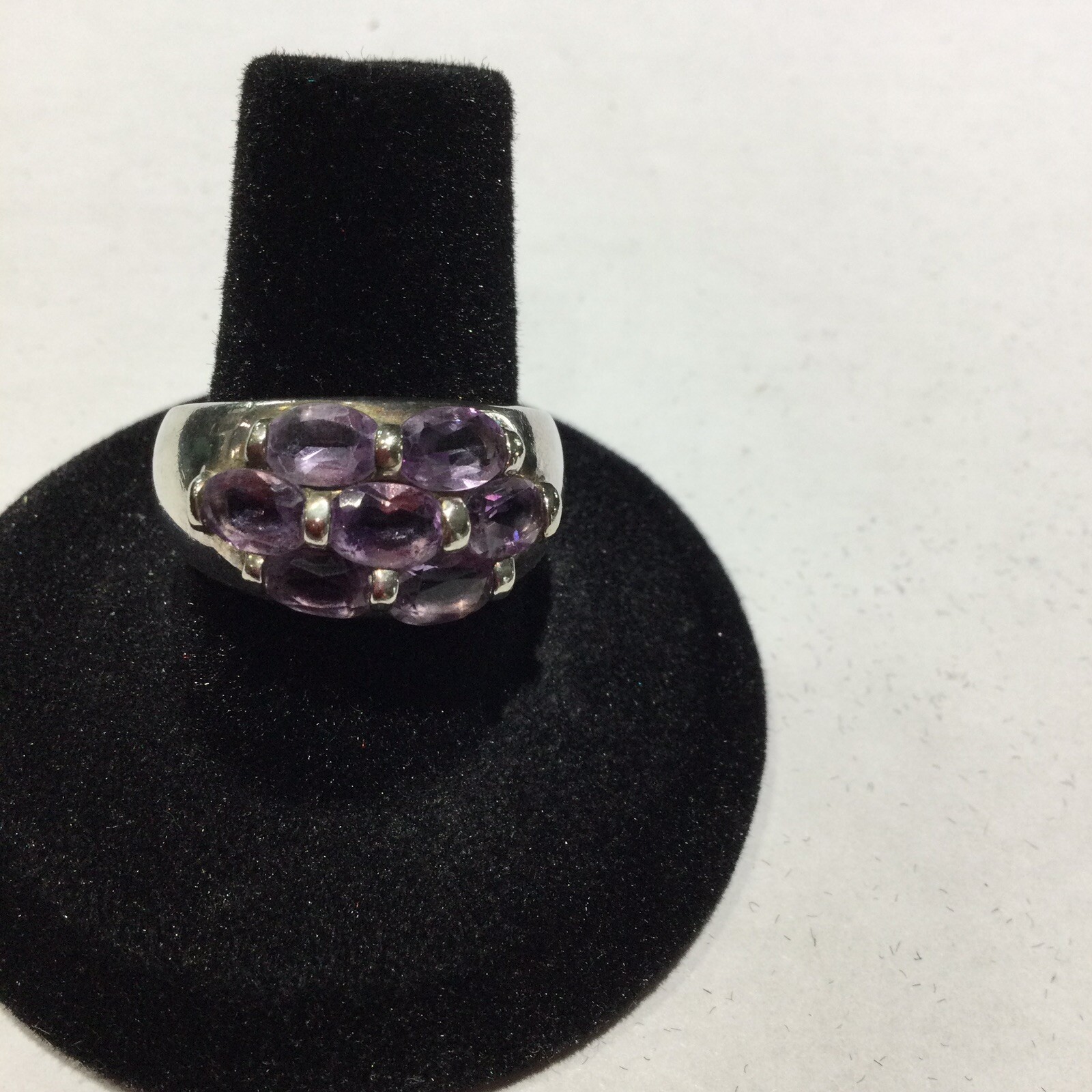 Sterling Silver 925 3.5 Caret Amethyst Wide Band Ring