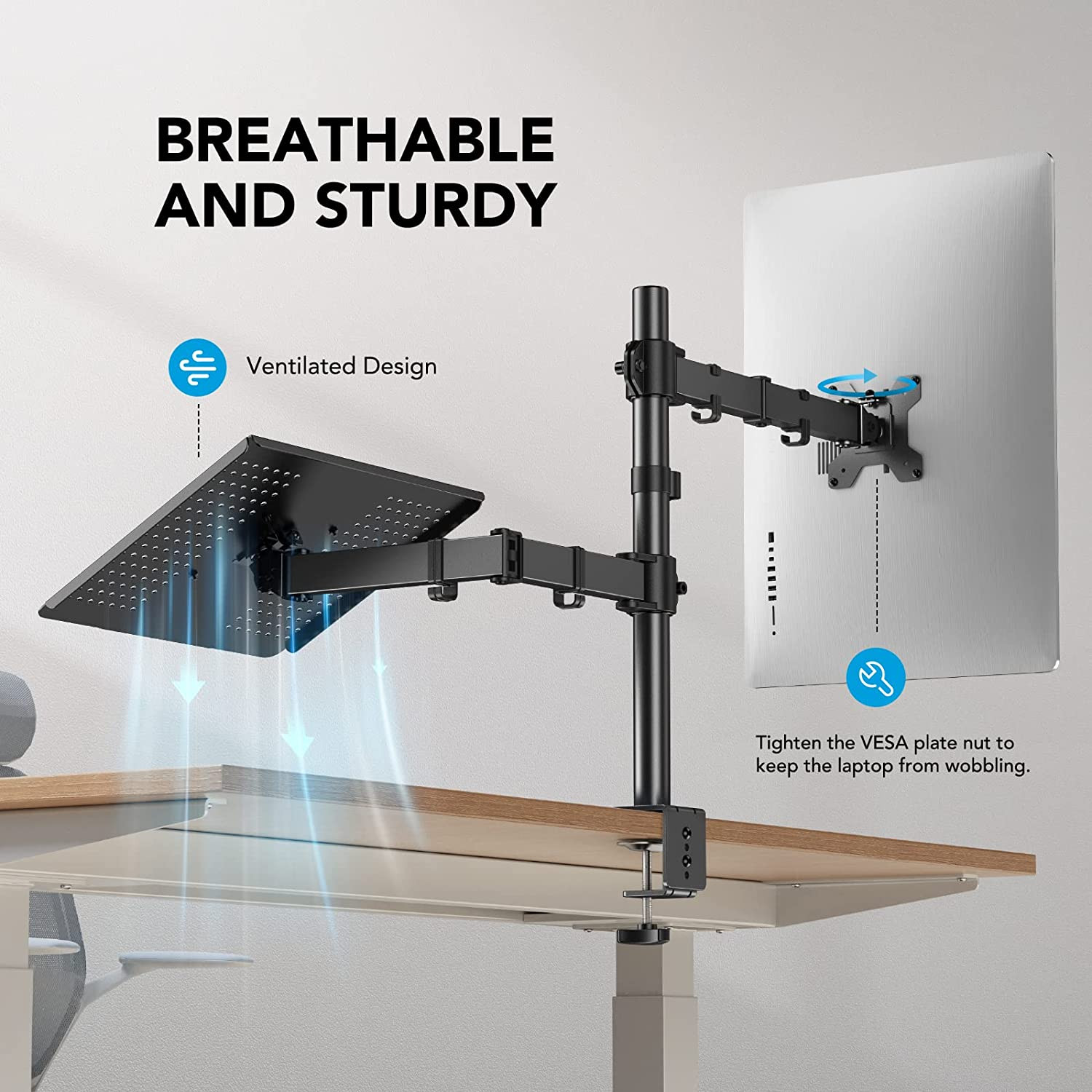 Adjustable Laptop Monitor Desk Mount for 13-32 Screens, Up to 22 lbs