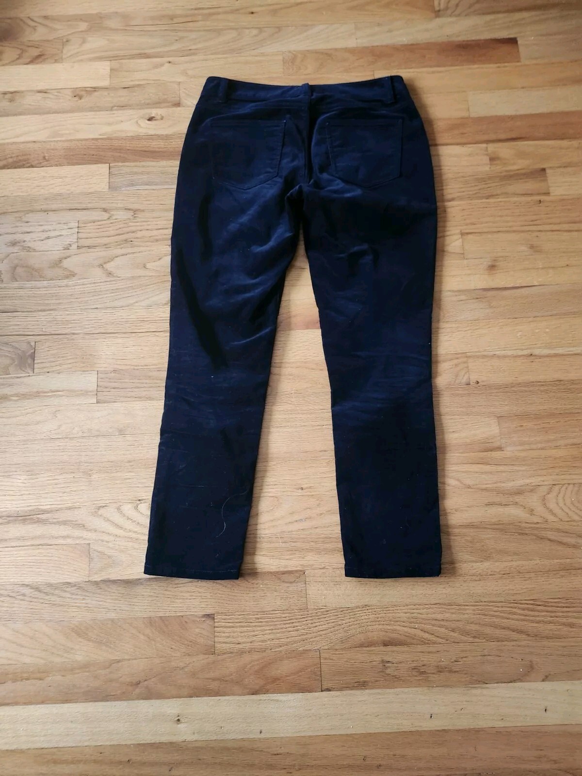 как выглядит Talbots Petites Signature Black Velvet Pants Size 6P Cotton Blend Tapered Legs фото