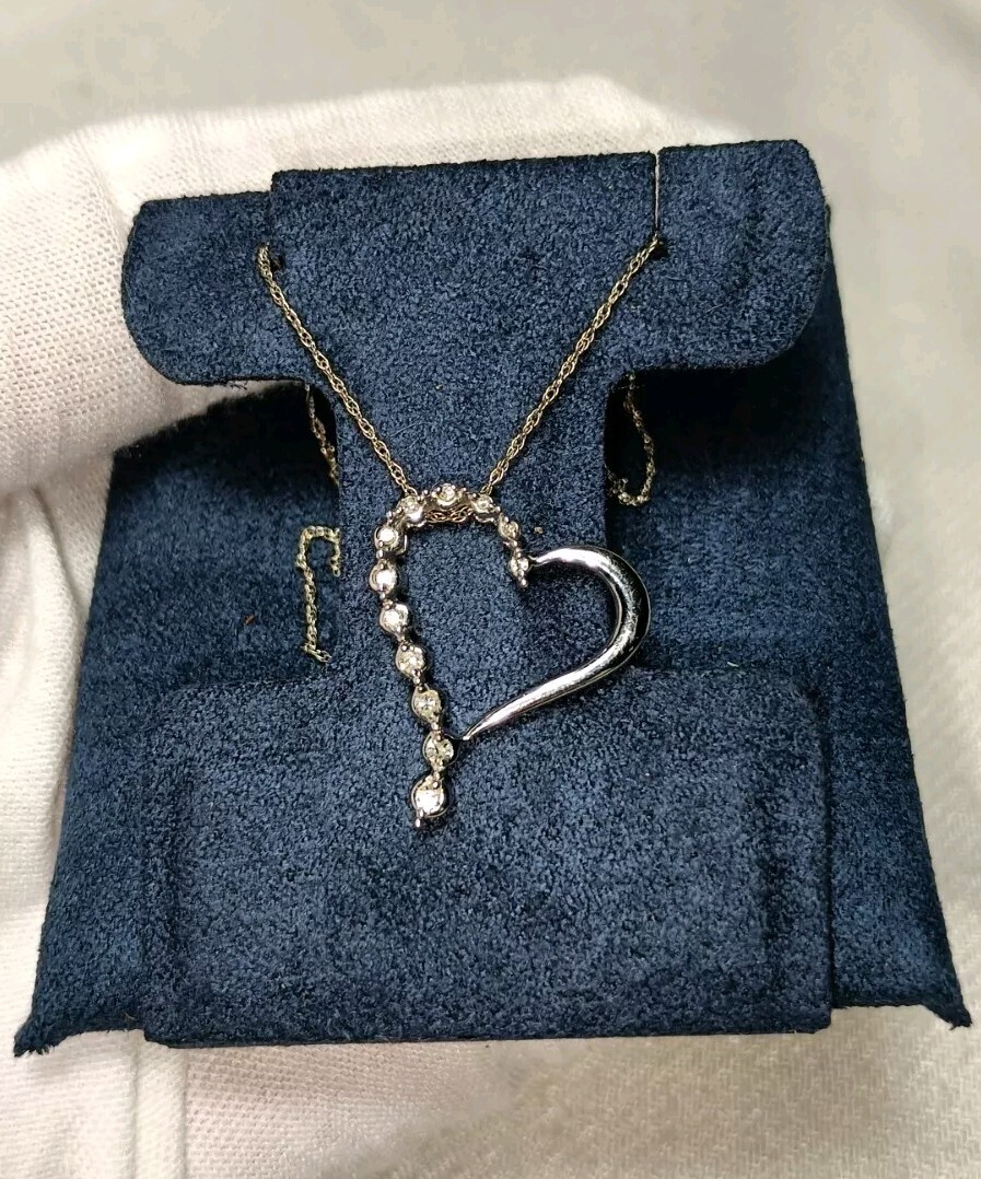 как выглядит 10k White Gold Diamond Heart Pendant Chain Necklace 18 in фото