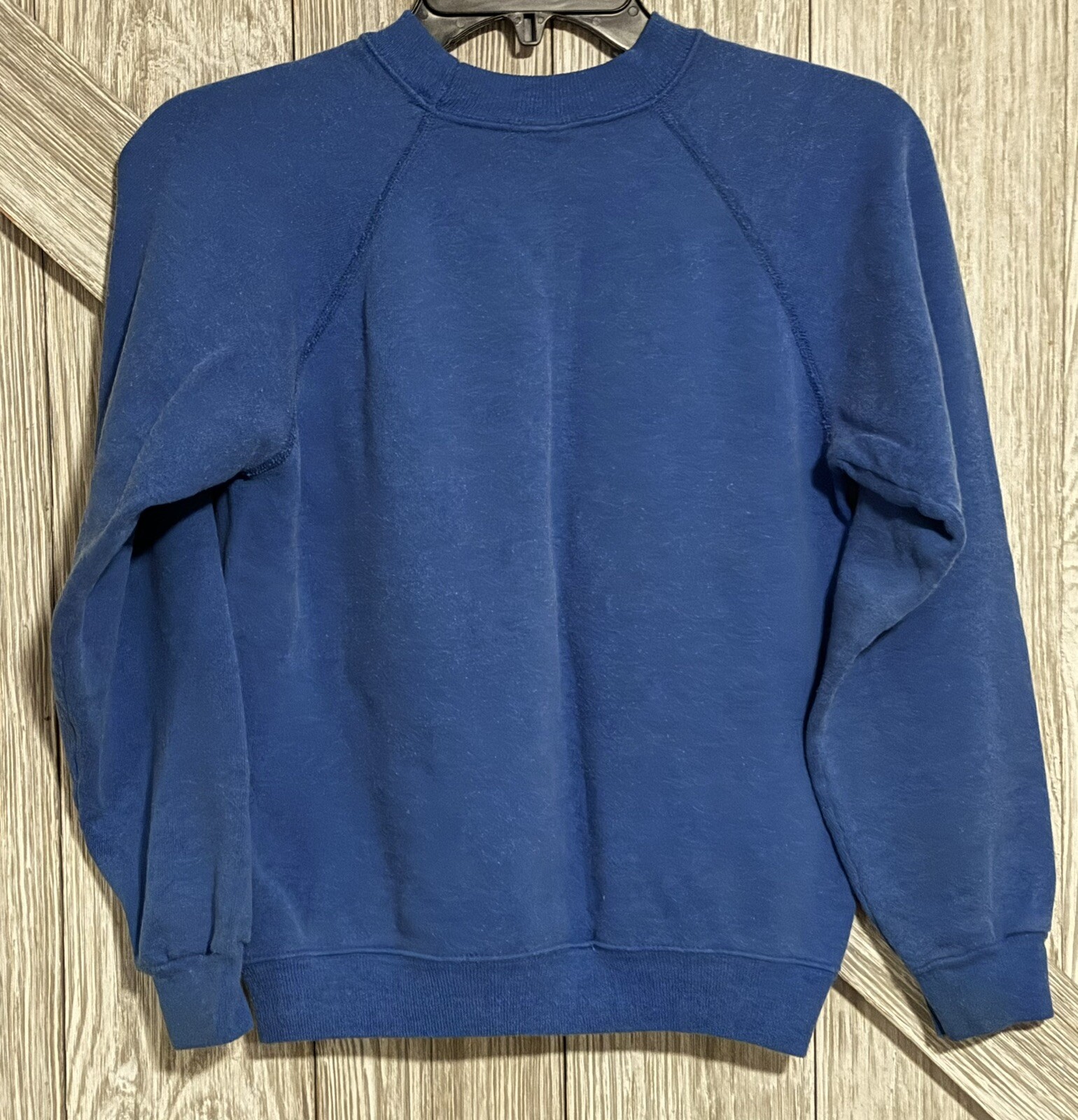 Vintage 1980 s MUSTANGS High School Blue Sweatshirt Size Large 14-16 Made In USA