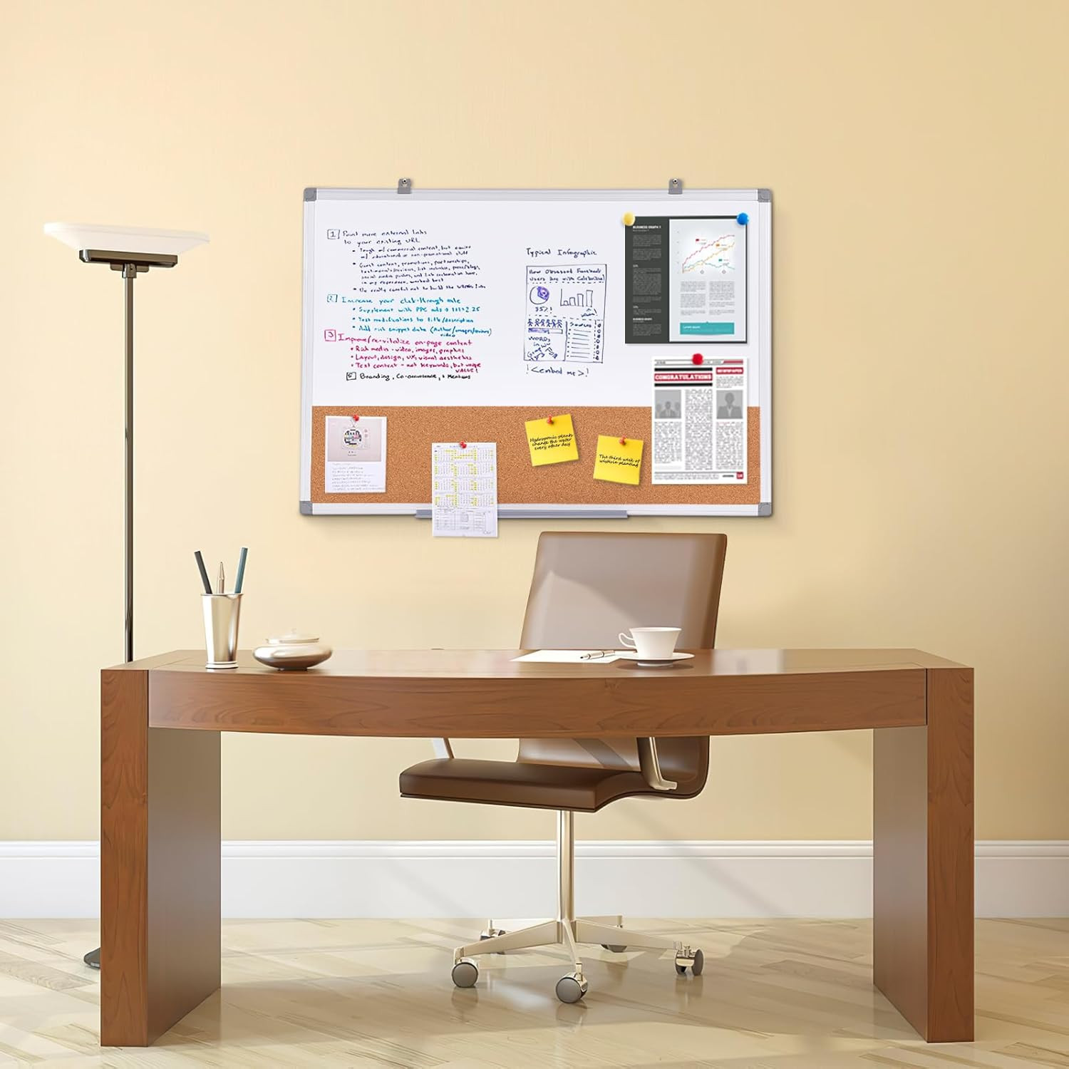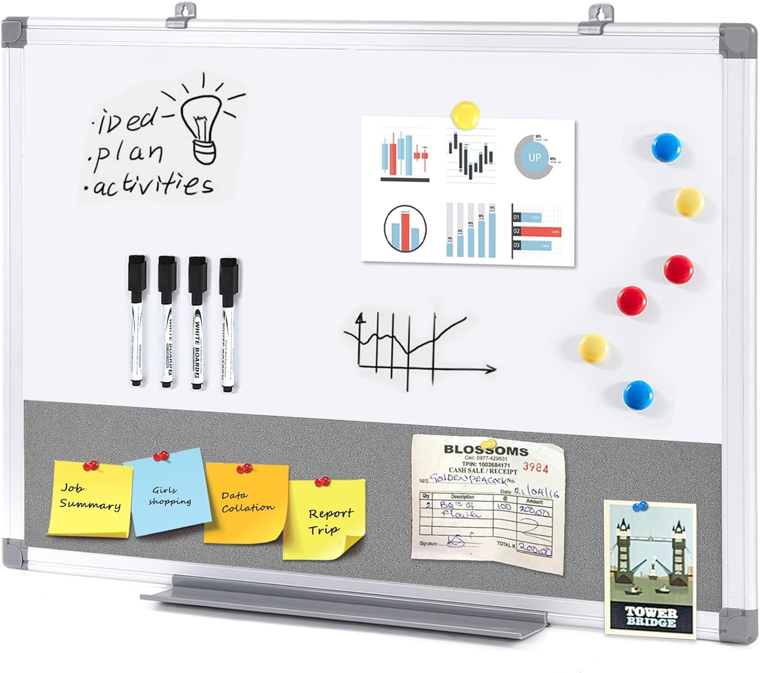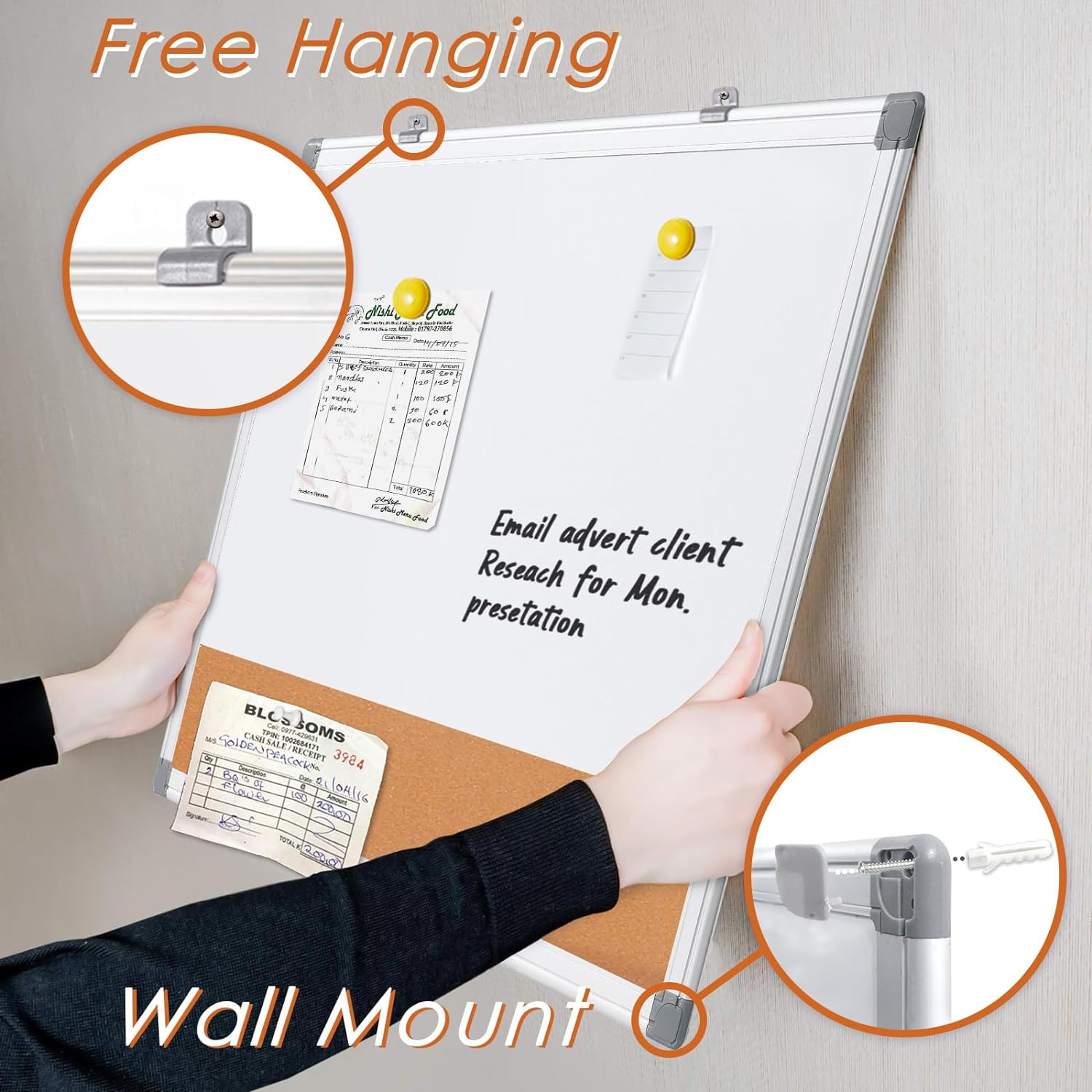 Magnetic Dry Erase Cork Board Combo 36x24 for Home, School, Office
