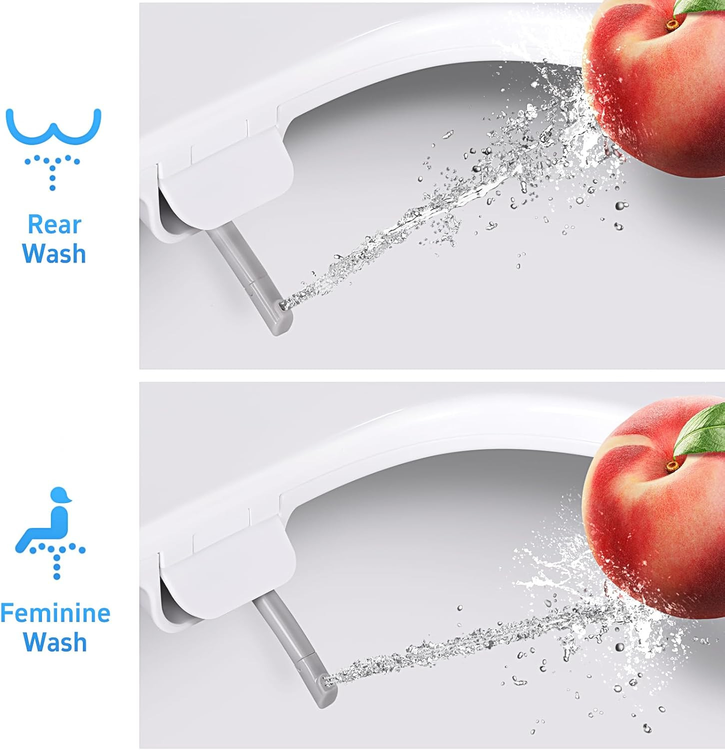 Round Bidet Toilet Seat with Quiet-Close, Non-Electric Bidet Toilet Seat with Du