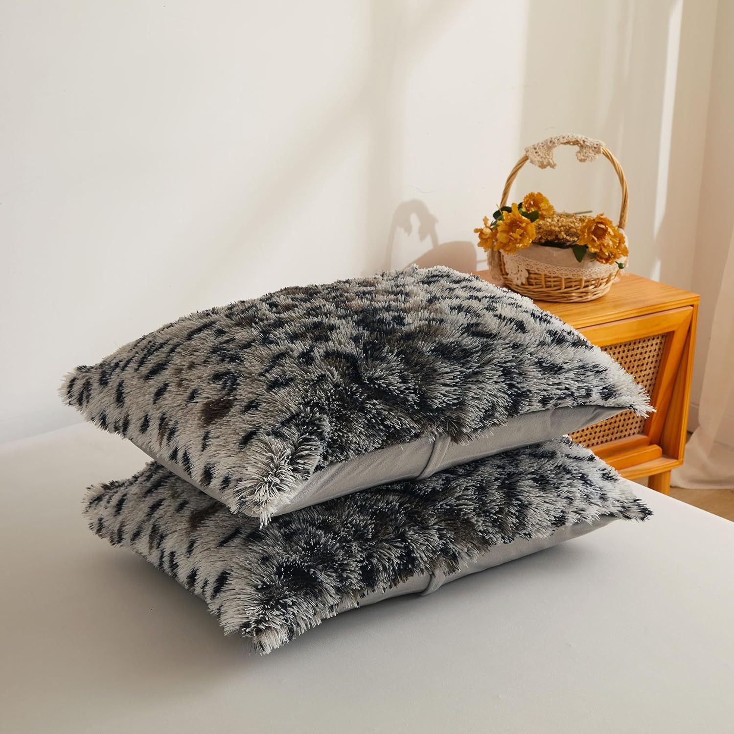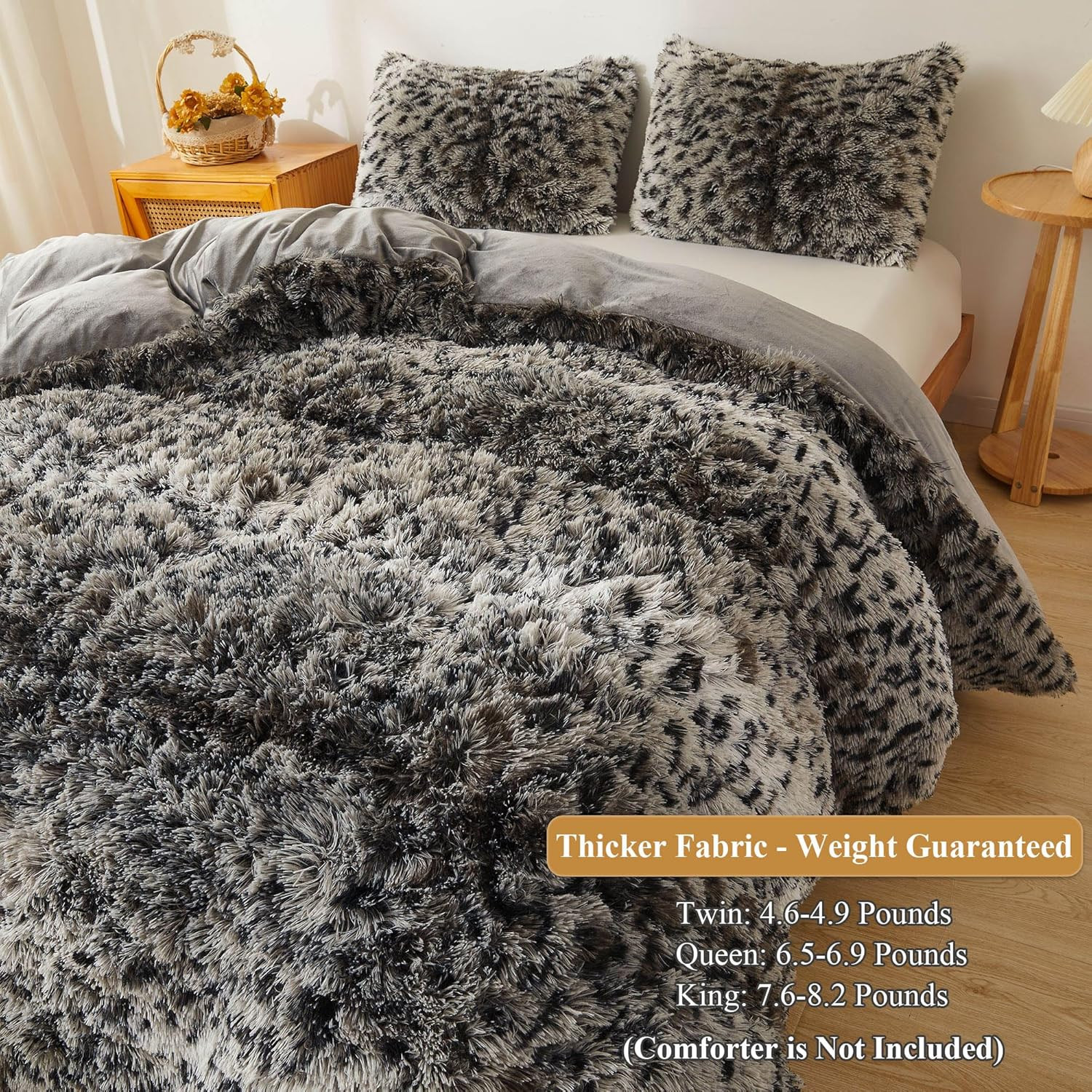 Leopard Print Fluffy Faux Fur Duvet Cover Set, 3 Pieces Soft Plush Shaggy Fuzzy