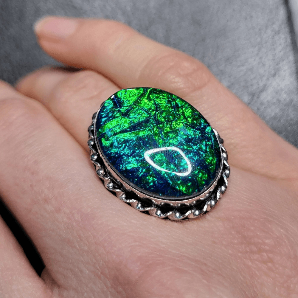 как выглядит Gorgeous Large Dichroic Glass Ring - Size 6 фото