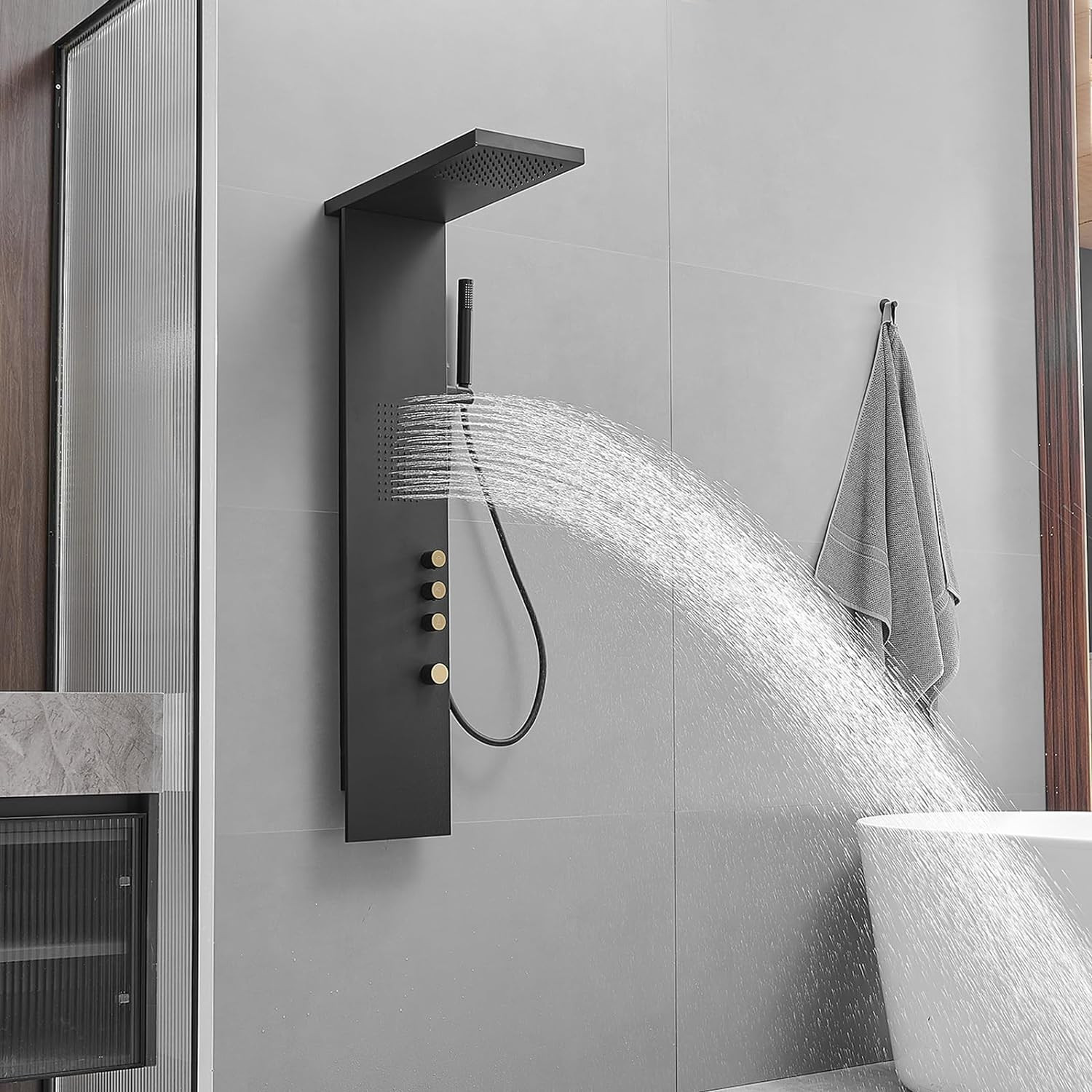 3 in 1 Shower Panel Tower System Stainless Steel Shower Panel Rainfall Shower He